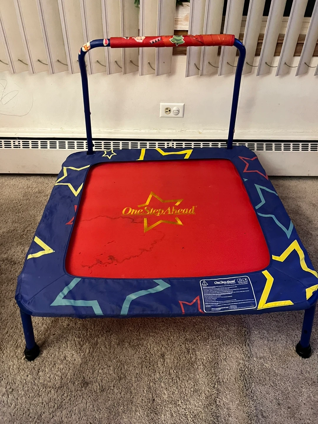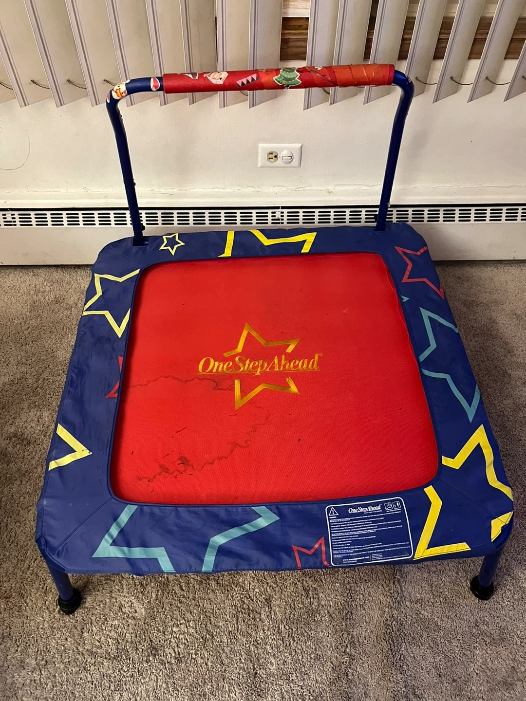 121Selling a One Step Ahead trampoline! It's in good condition and perfect for active kids. Features a sturdy frame and a fun, bouncy surface. Great for indoor or outdoor use!