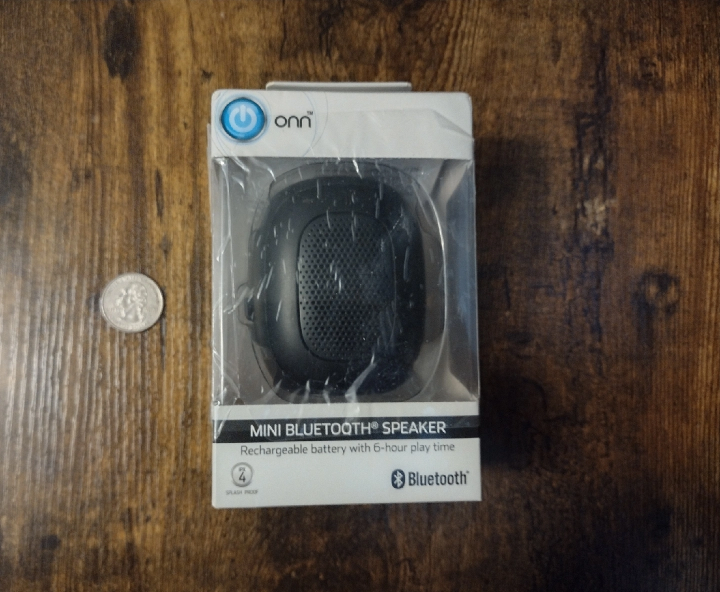 Selling a brand new onn. Mini Bluetooth Speaker! It features a rechargeable battery with up to 6 hours of playtime. It's also splash-proof, making it perfect for on-the-go listening. It's still in its original packaging!