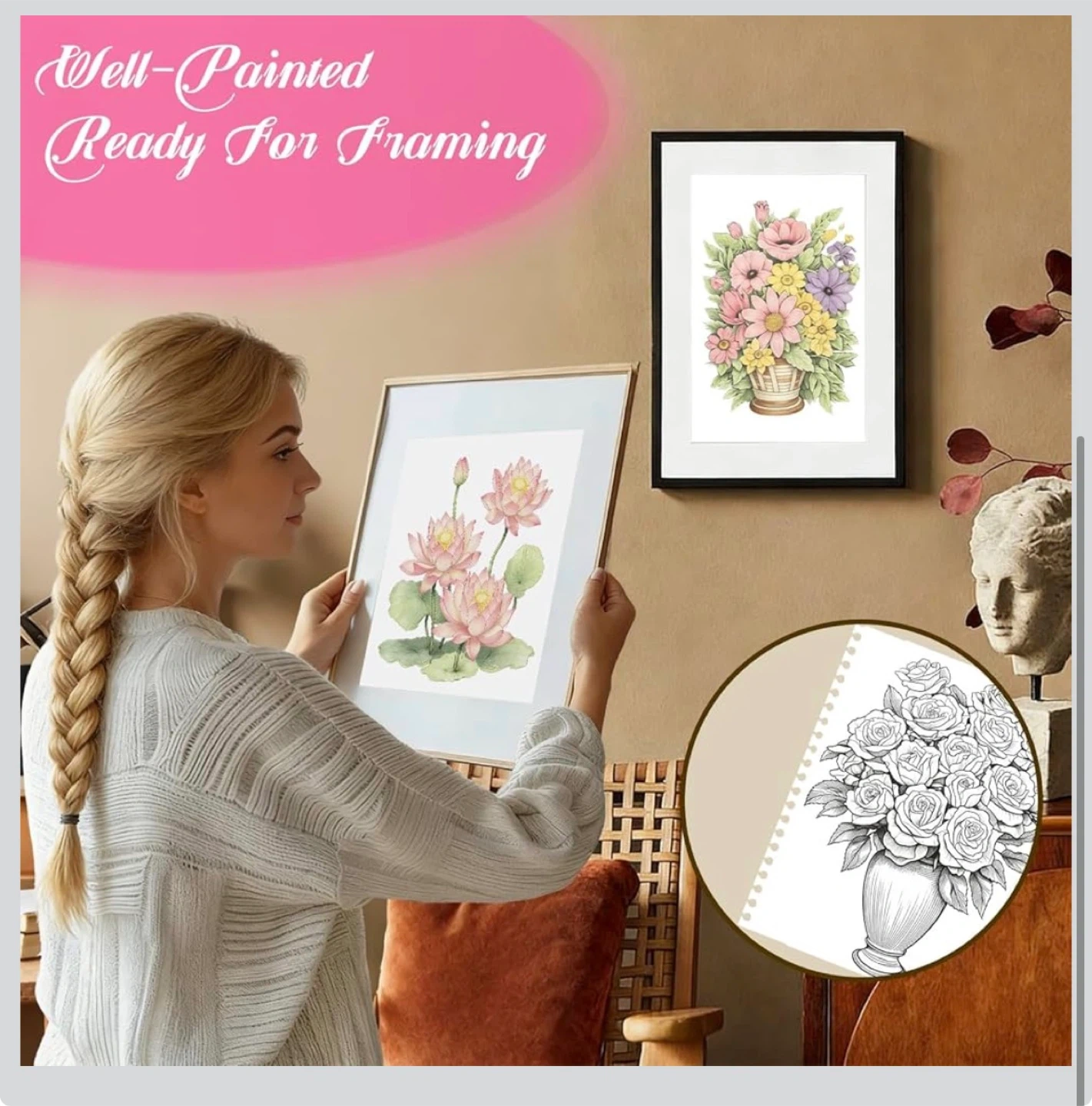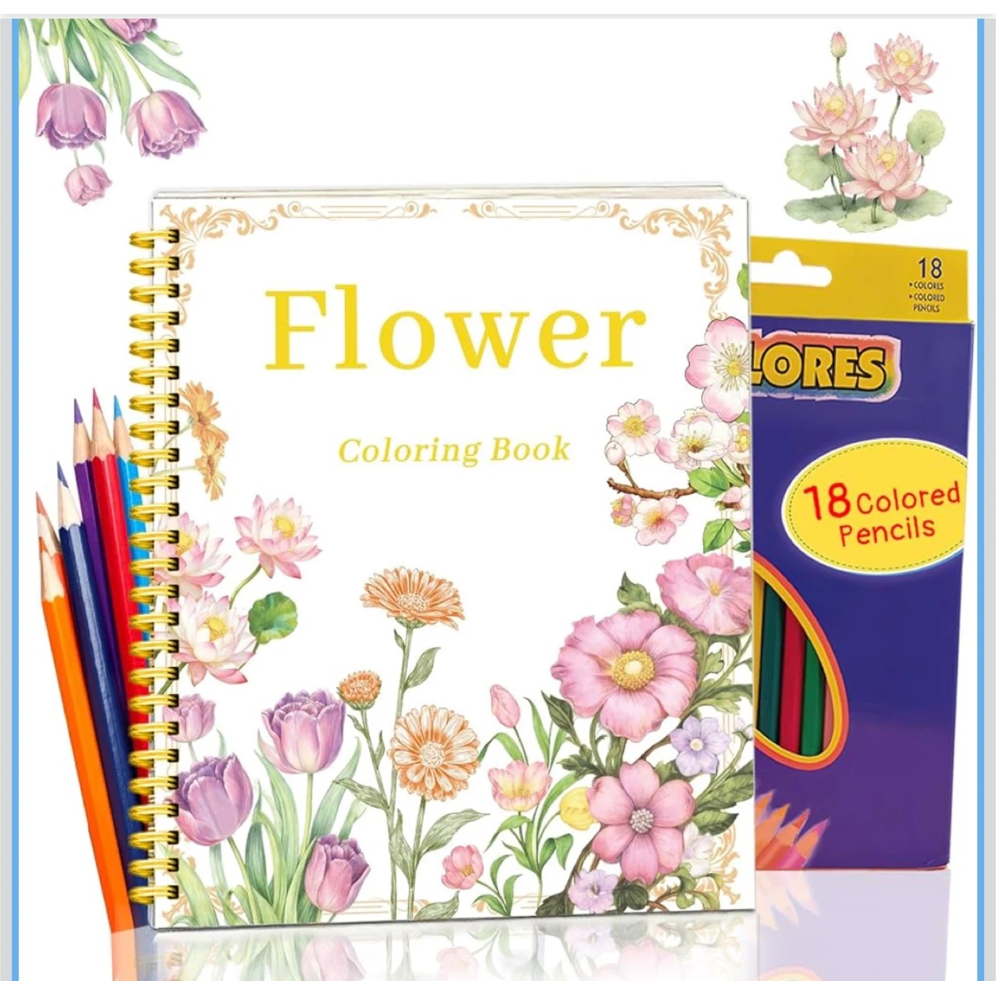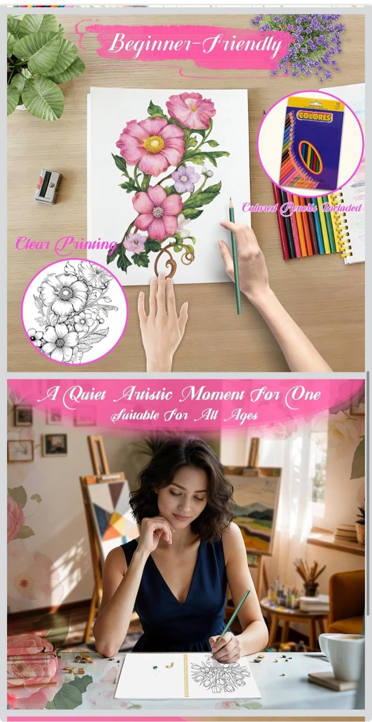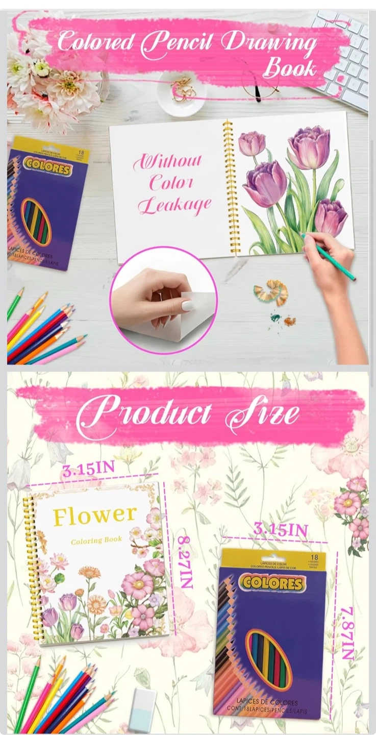 Beautiful Adult Coloring Book Set with 18-Color Pencil Set - Coloring Books for Adults Relaxation Adult Coloring Book for Women Gifts.Elegant Art Style with 35 Patterns.
