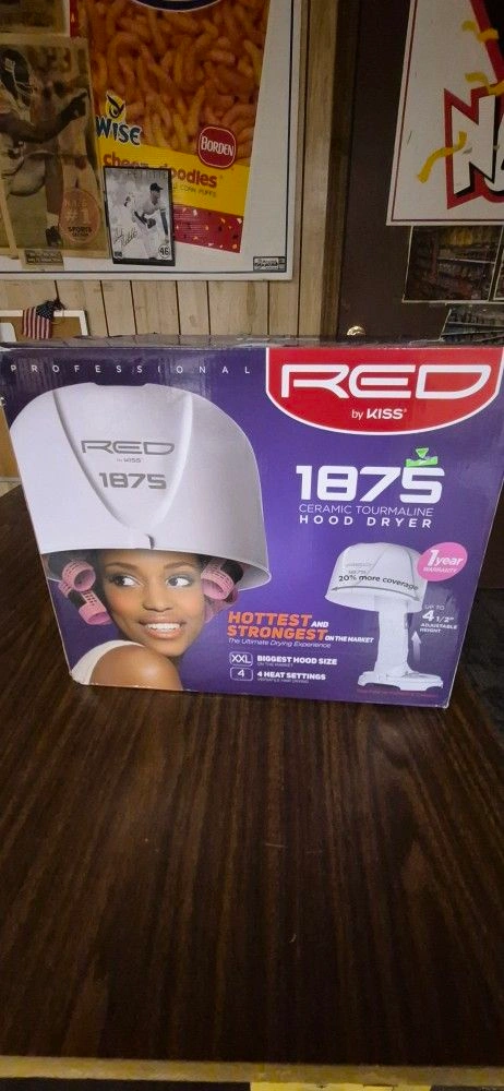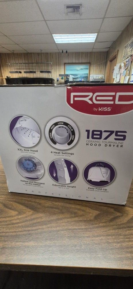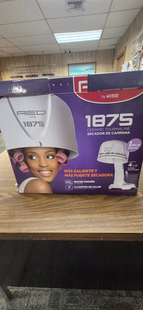 Open box 1875 ceramic tourmaline hood dryer. Brand: Red
