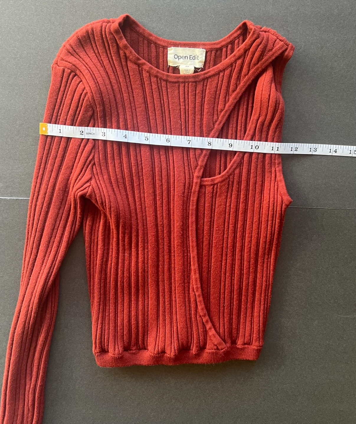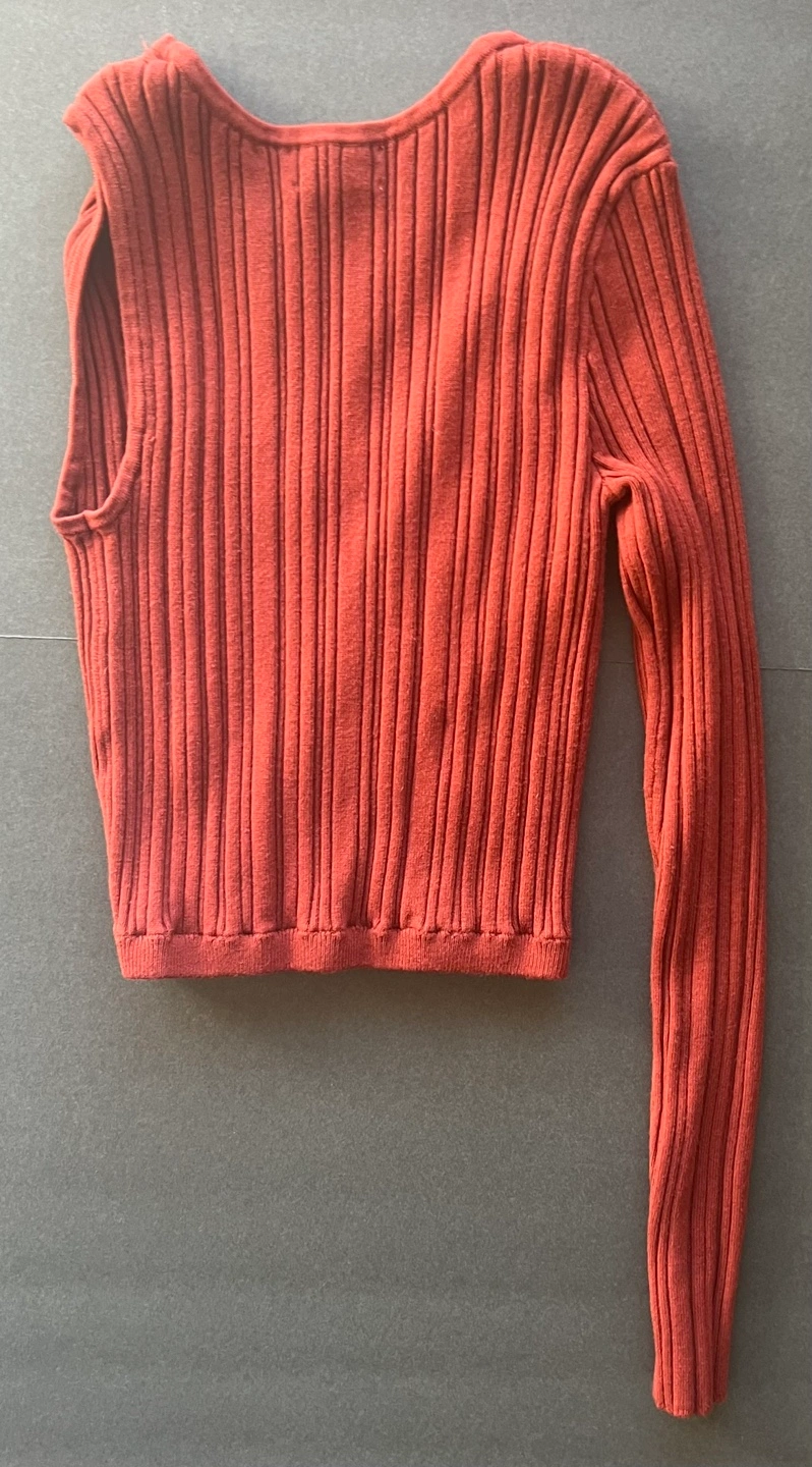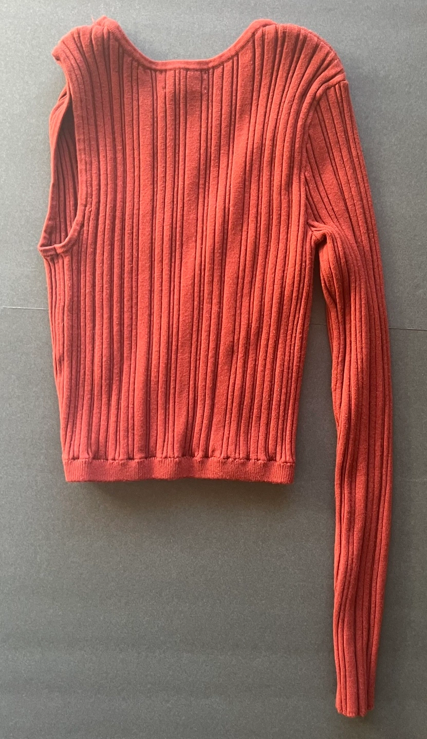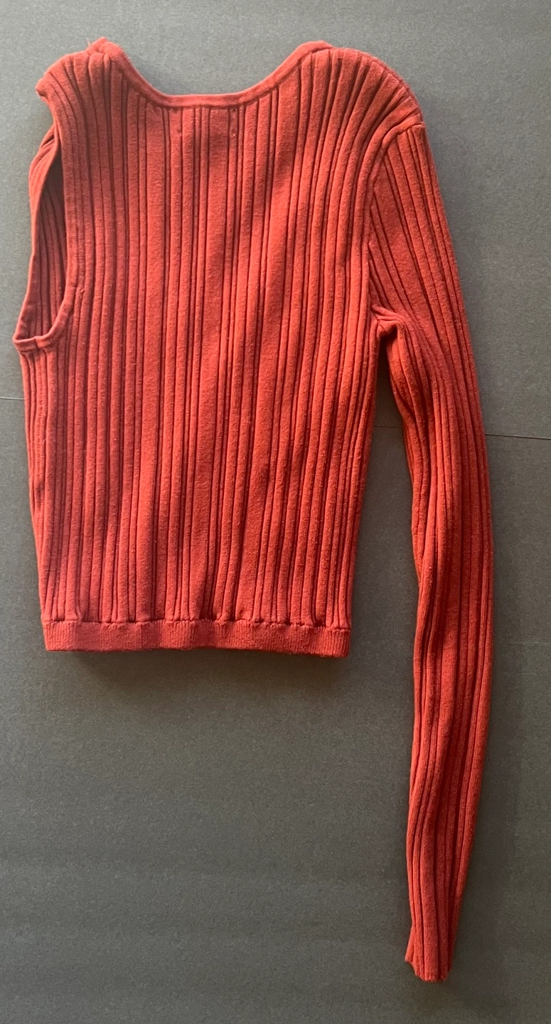 205Long sleeve, ribbed, crop top with cut-out detail. Size XS.