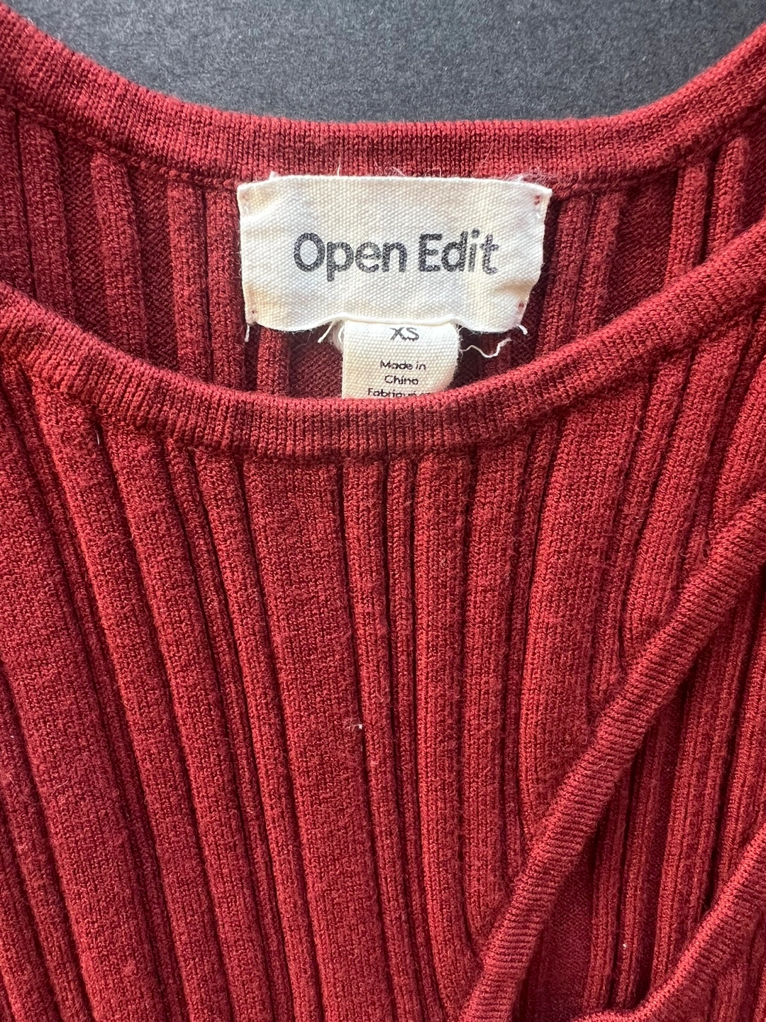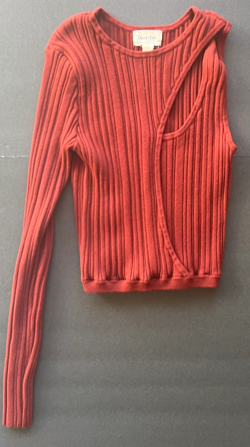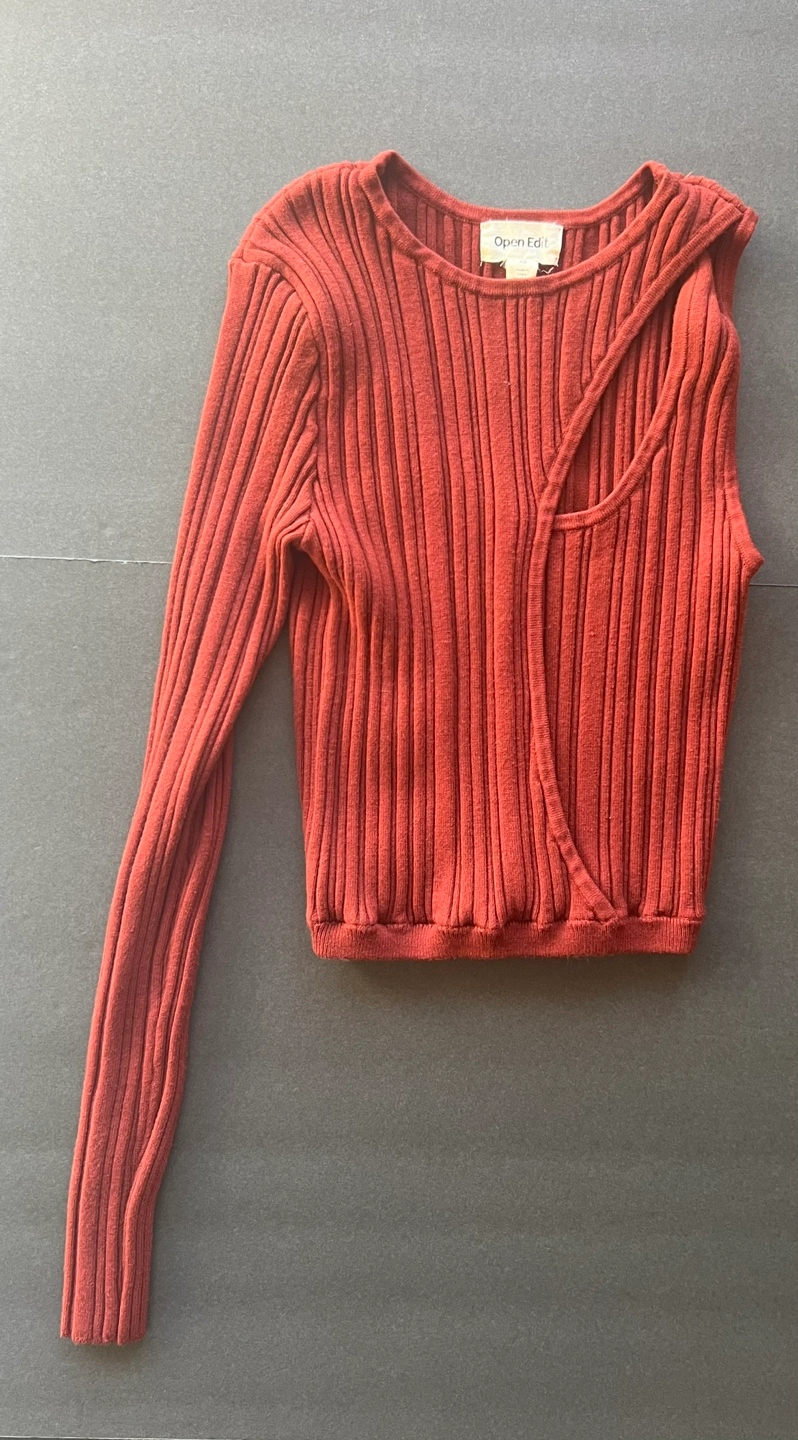 205Long sleeve, ribbed, crop top with cut-out detail. Size XS.