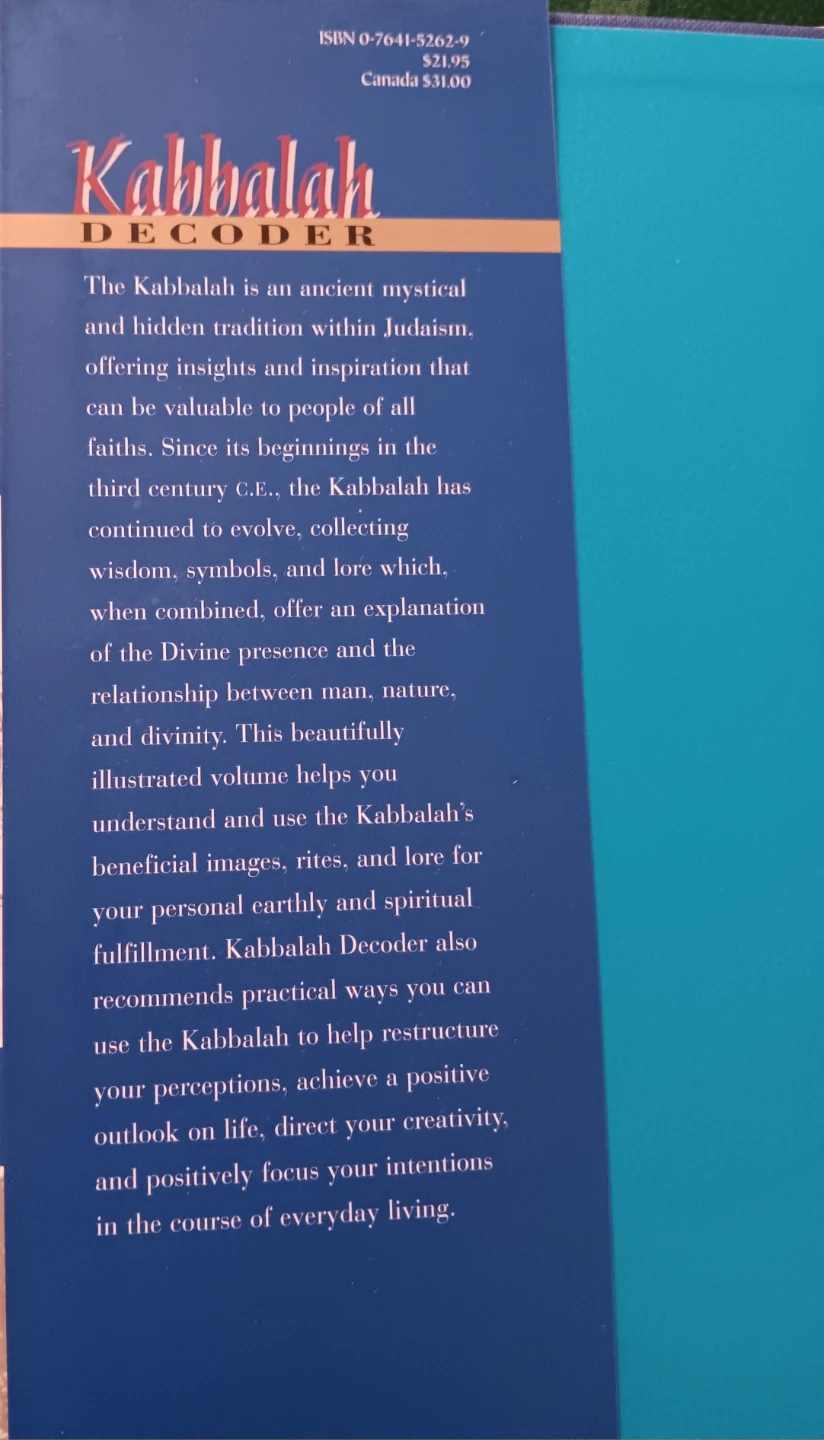 Selling a copy of Kabbalah Decoder. It provides insights and inspiration that can be valuable to people of all faiths. This illustrated volume helps you understand and use the Kabbalah's beneficial images, rites, and lore for your personal earthly and spiritual fulfillment