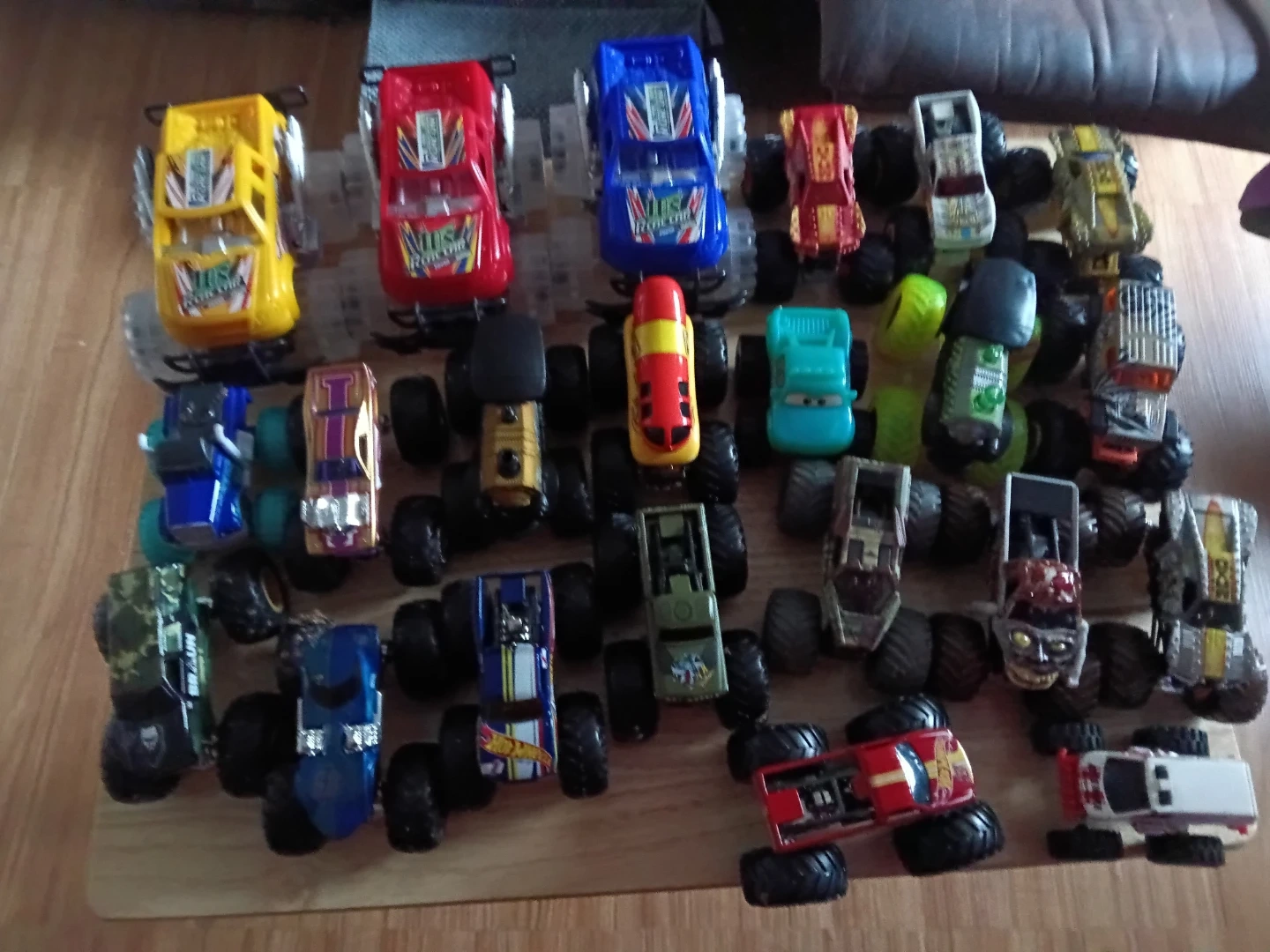 Collection of various Monster Jam monster trucks. Includes multiple designs and colors. These durable die-cast trucks are ready for play!