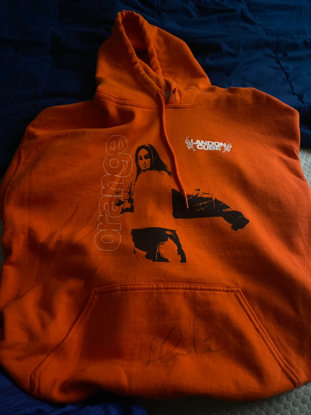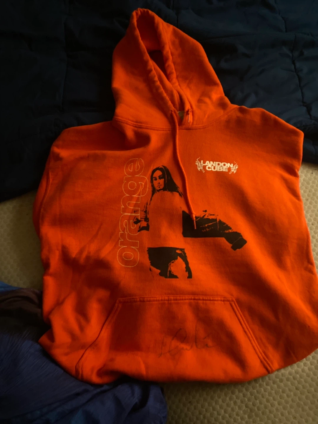 Selling an orange Landon Cube hoodie Signed By Landon Cube Himself!! The hoodie is in good condition and ready for a new Collector/Fan. If You Don’t Know Who He Is! Search Him Up On YouTube He’s Friends And Made Hit Songs With Rapper “Lil Skies” (Lil Skies “Nowadays” Ft Landon Cube 🔥