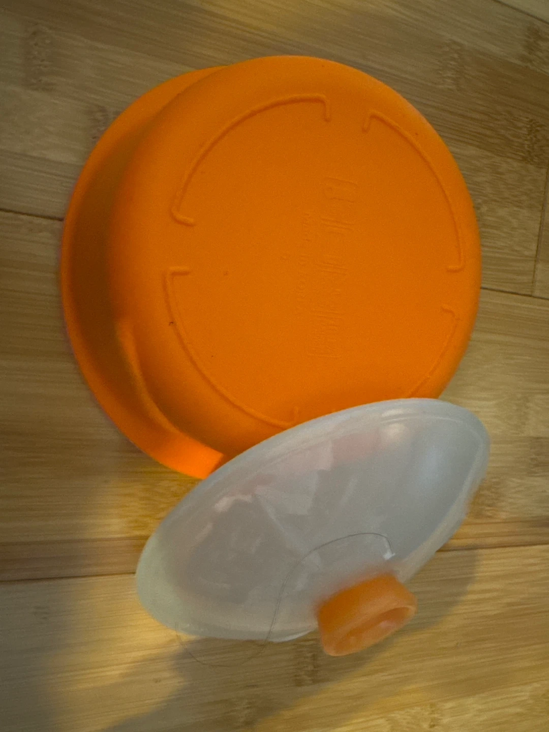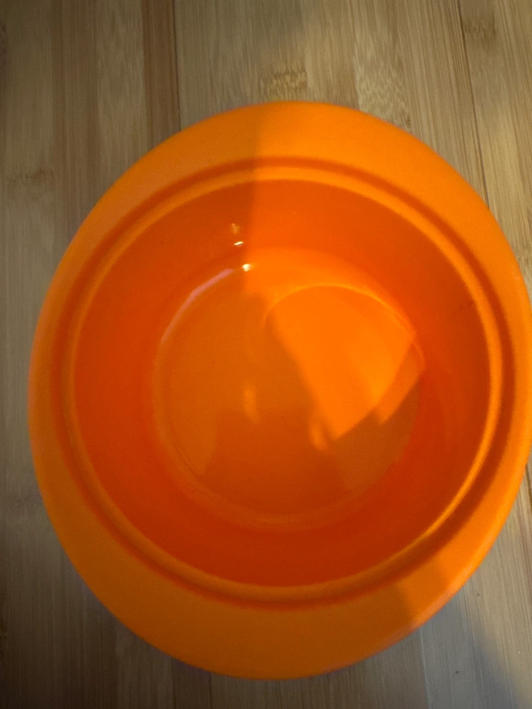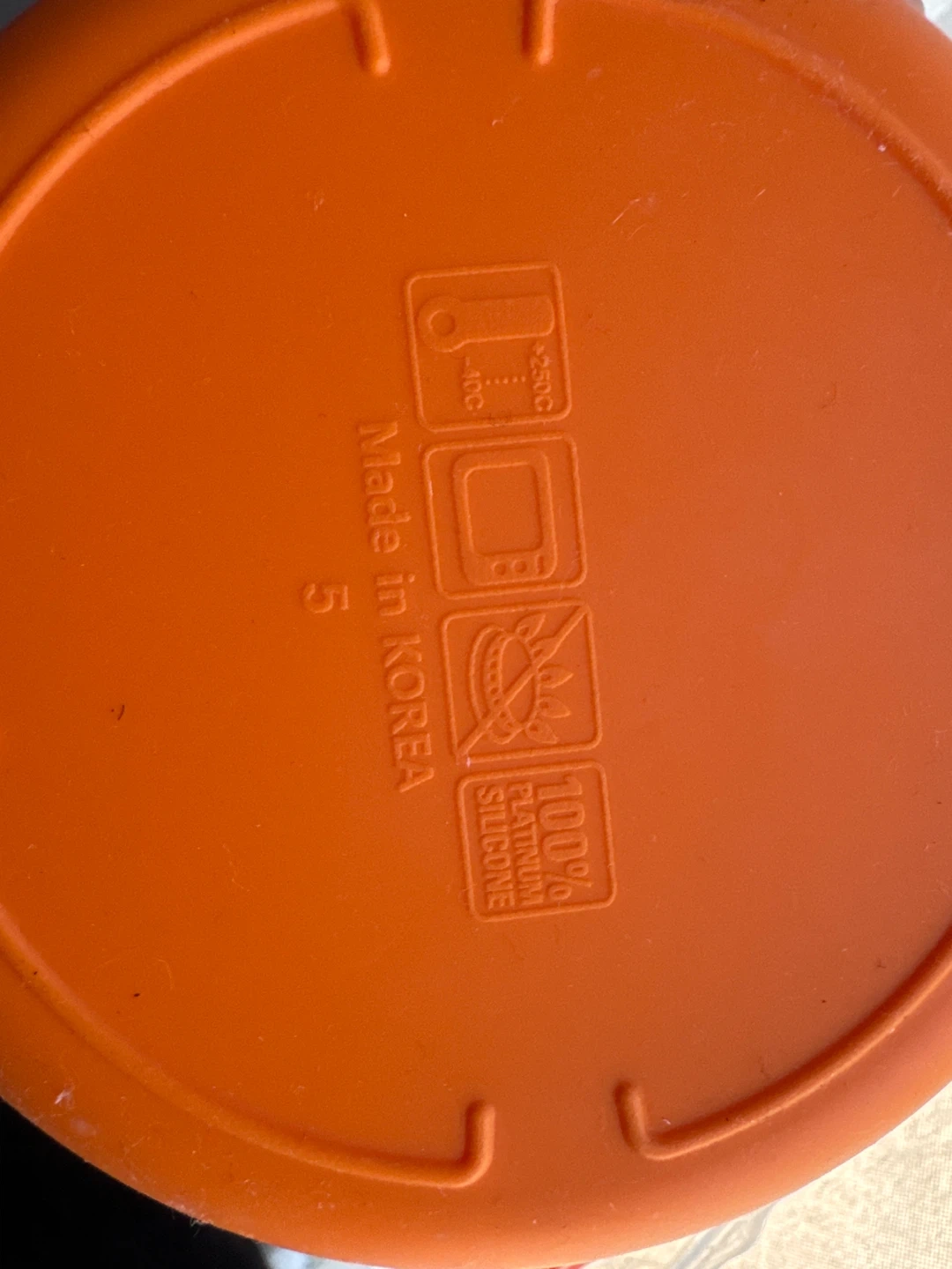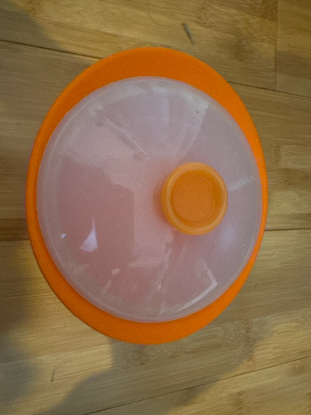 I'm selling an orange food container made of 100% platinum silicone. It comes with a clear lid. It's microwave safe! And it is Good material for your health.Expensive silicone pot, get a brgain this time. Exchanges and refunds are not allowed.