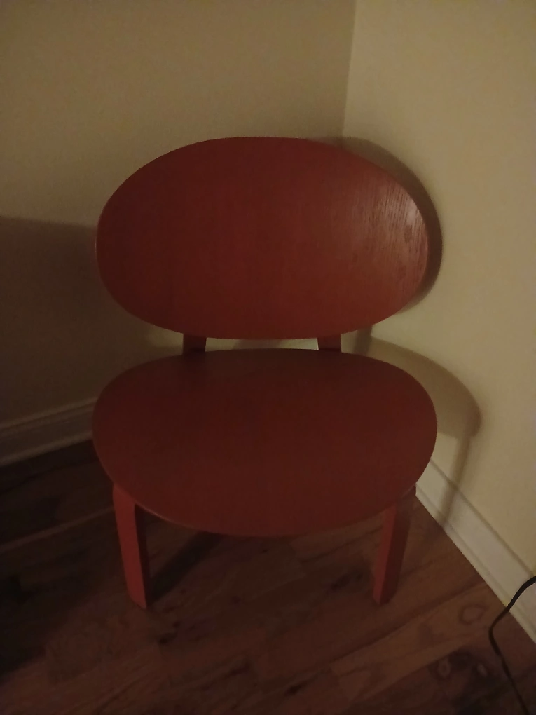Selling a cute orange wooden chair! It's in good condition and perfect for a kid's room or as an accent piece in your living space