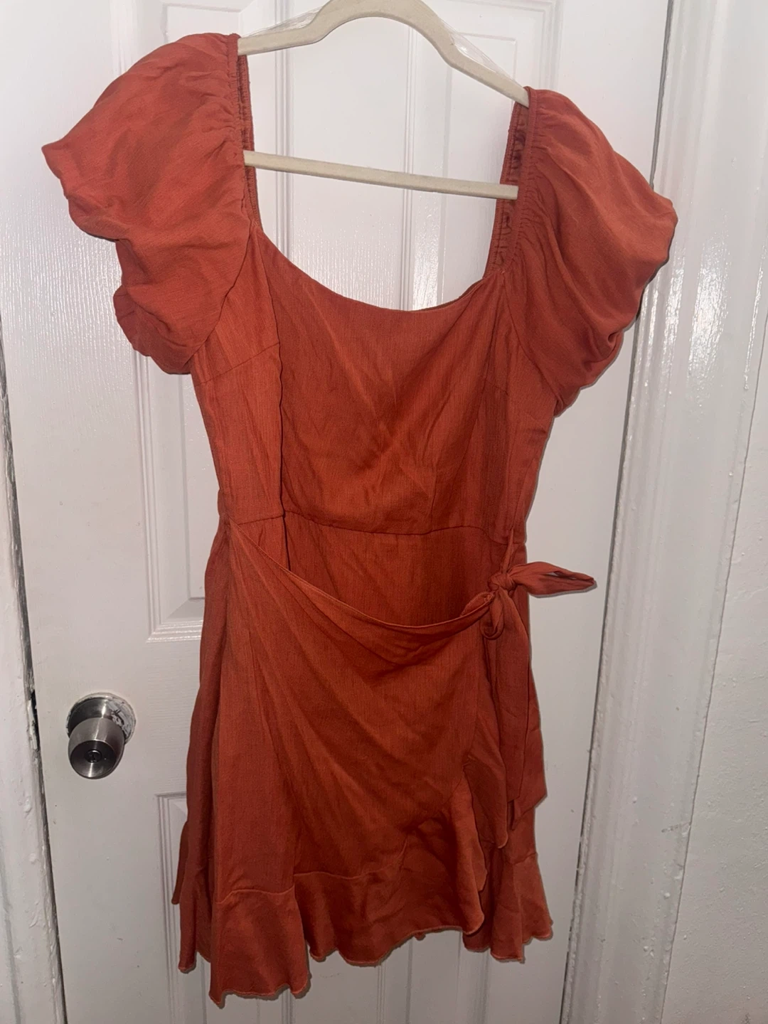 10Cute orange wrap dress with short sleeves! It's in great condition and ready for a new home