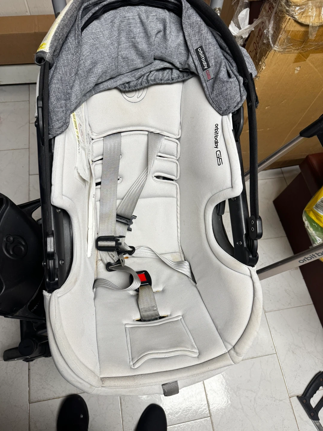 Selling an Orbit Baby G3 stroller with the car seat attachment. It's in good condition and ready for a new family. The stroller has a unique rotating feature and is compatible with other Orbit Baby products. Perfect for navigating city streets or going for a stroll in the park!
