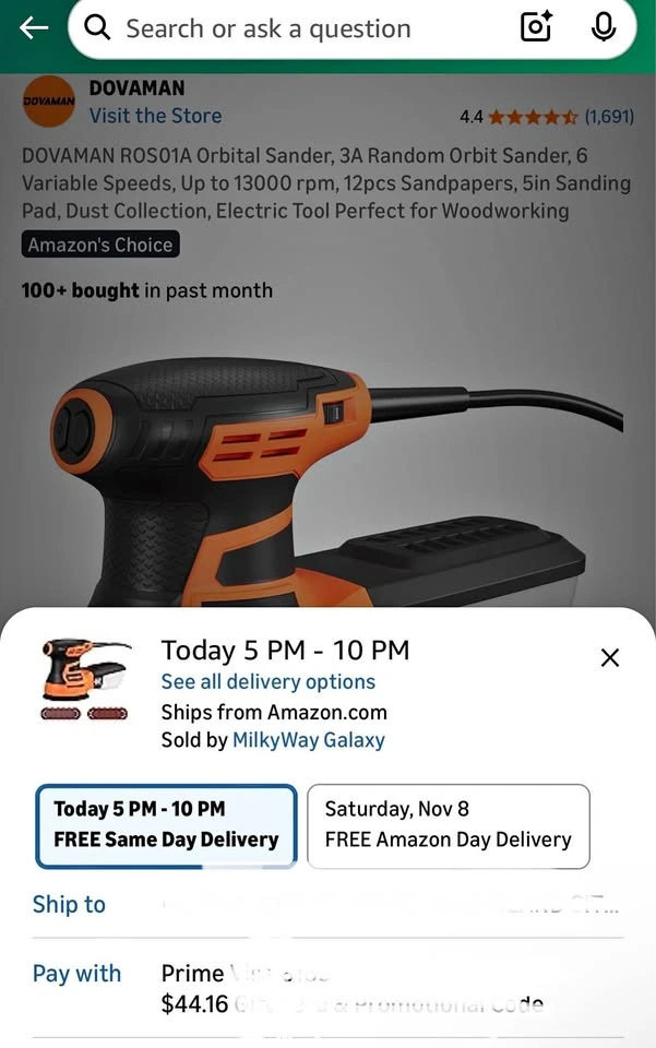 176DOVAMAN ROS01A Orbital Sander, 3A Random Orbit Sander, 6 Variable Speeds, Up to 13000 rpm, 12pcs Sandpapers, 5in Sanding Pad, Dust Collection, Electric Tool Perfect for Woodworking. USED ONCE! In Perfect Condition!! I’m adding the sanding discs too!! You won’t need more for a while!! This is already below cost. No further discount possible. Please no discount inquiries...Thanks for understanding. *Door pickup only — 4th fl walk-up, no elevator. Please bring help or do a quick double park if needed. Thank you.