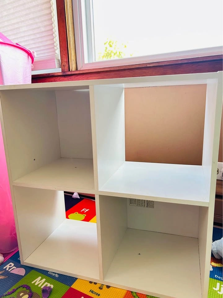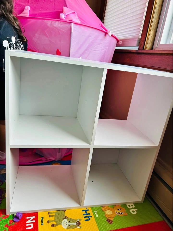 5Ideal para guardar juguetes, libros, ropa o decoración. 4 compartimientos amplios. Color: Blanco. Material: Madera MDF resistente. En buen estado, con leves marcas de uso (rayitas pequeñas). Perfecto para habitación infantil, sala o área de estudio. Puede recogerse. Listo para darle un toque ordenado y bonito a tu espacio!