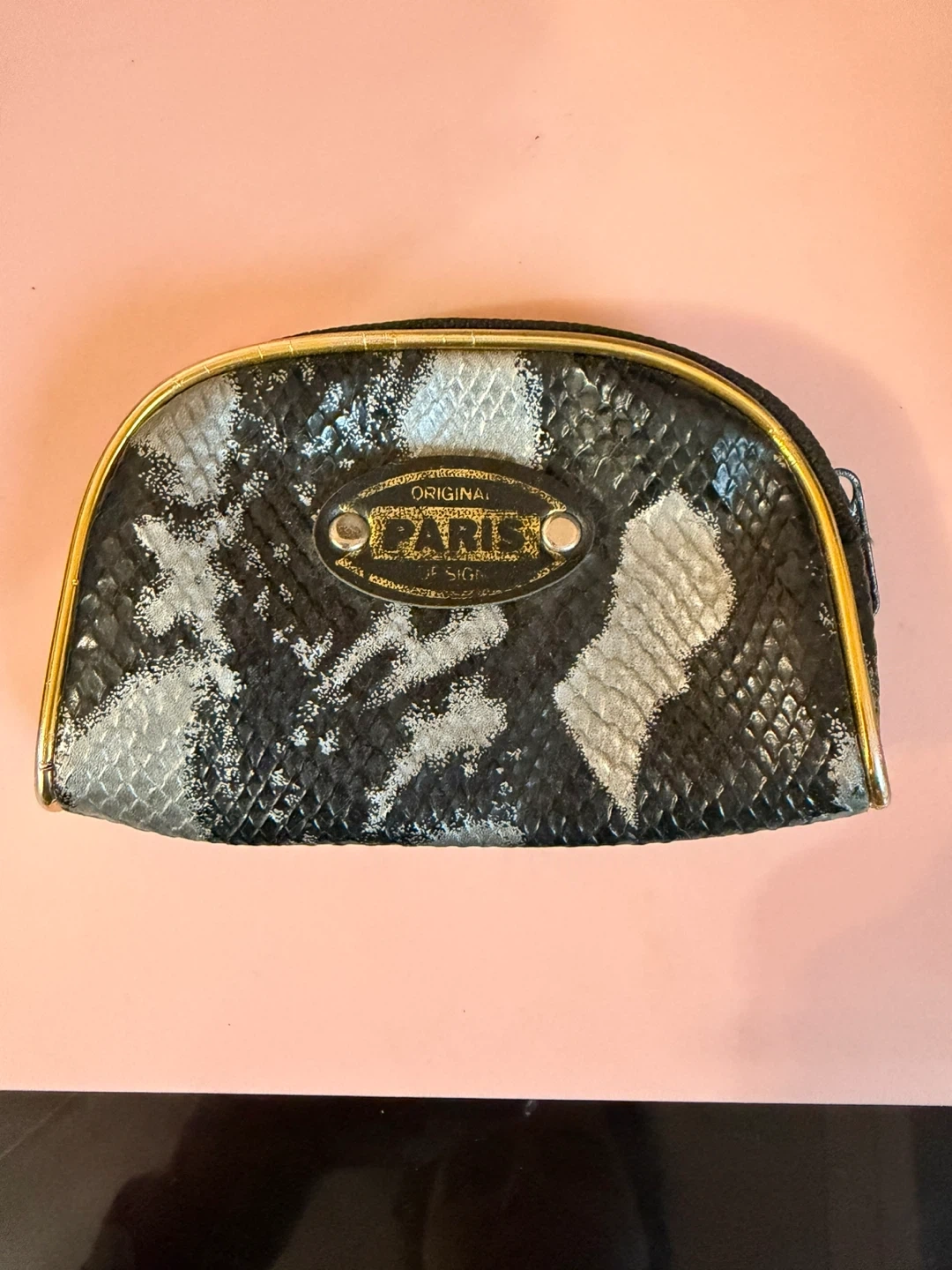 10Here's a cute pouch from Original Paris Design! It has a stylish snakeskin pattern in black and silver, with gold trim. Perfect for keeping your small essentials organized!