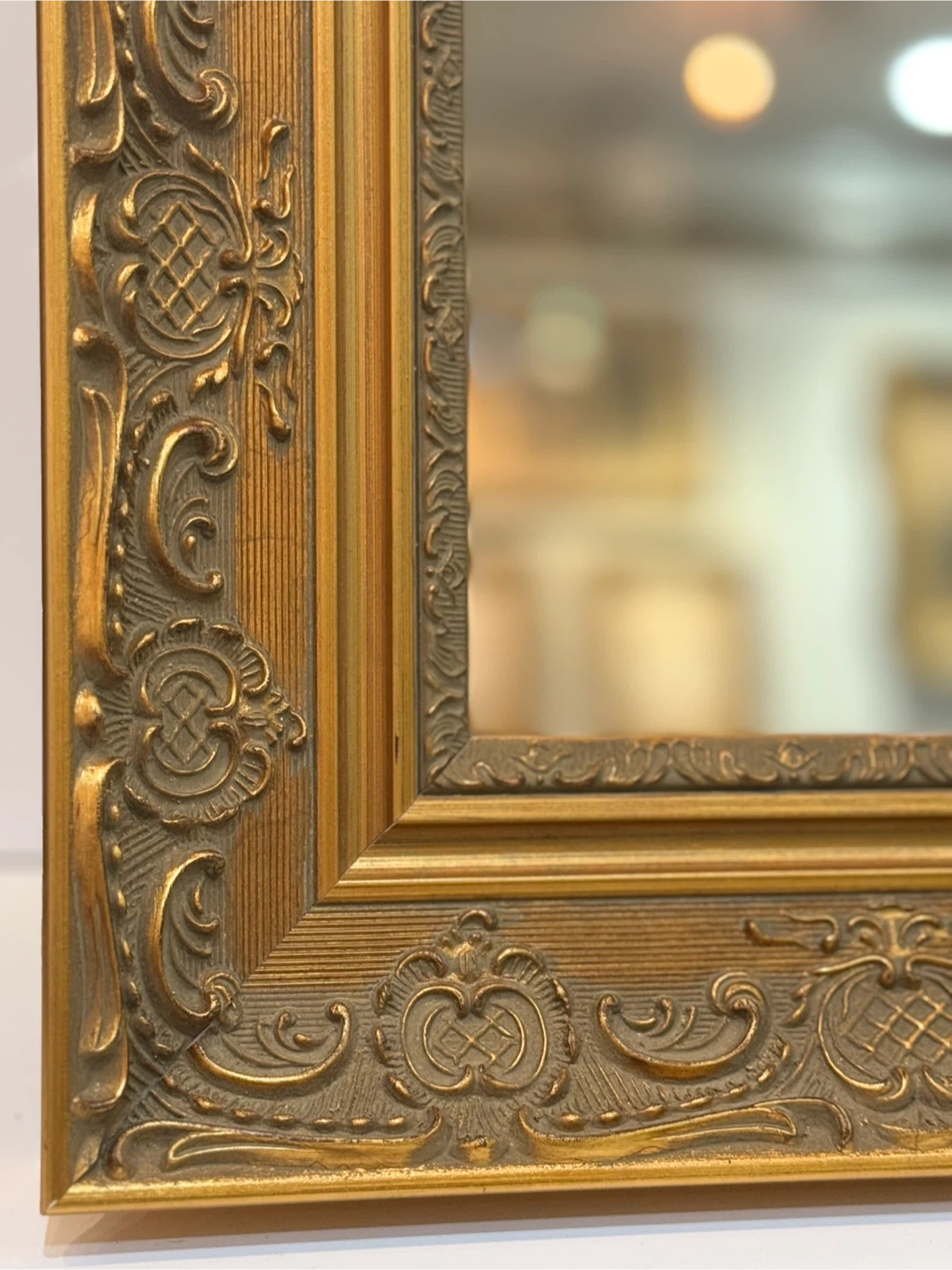 Beautiful ornate mirror with a gold frame! would look lovely in any room. The details on the frame are really stunning and add a touch of elegance