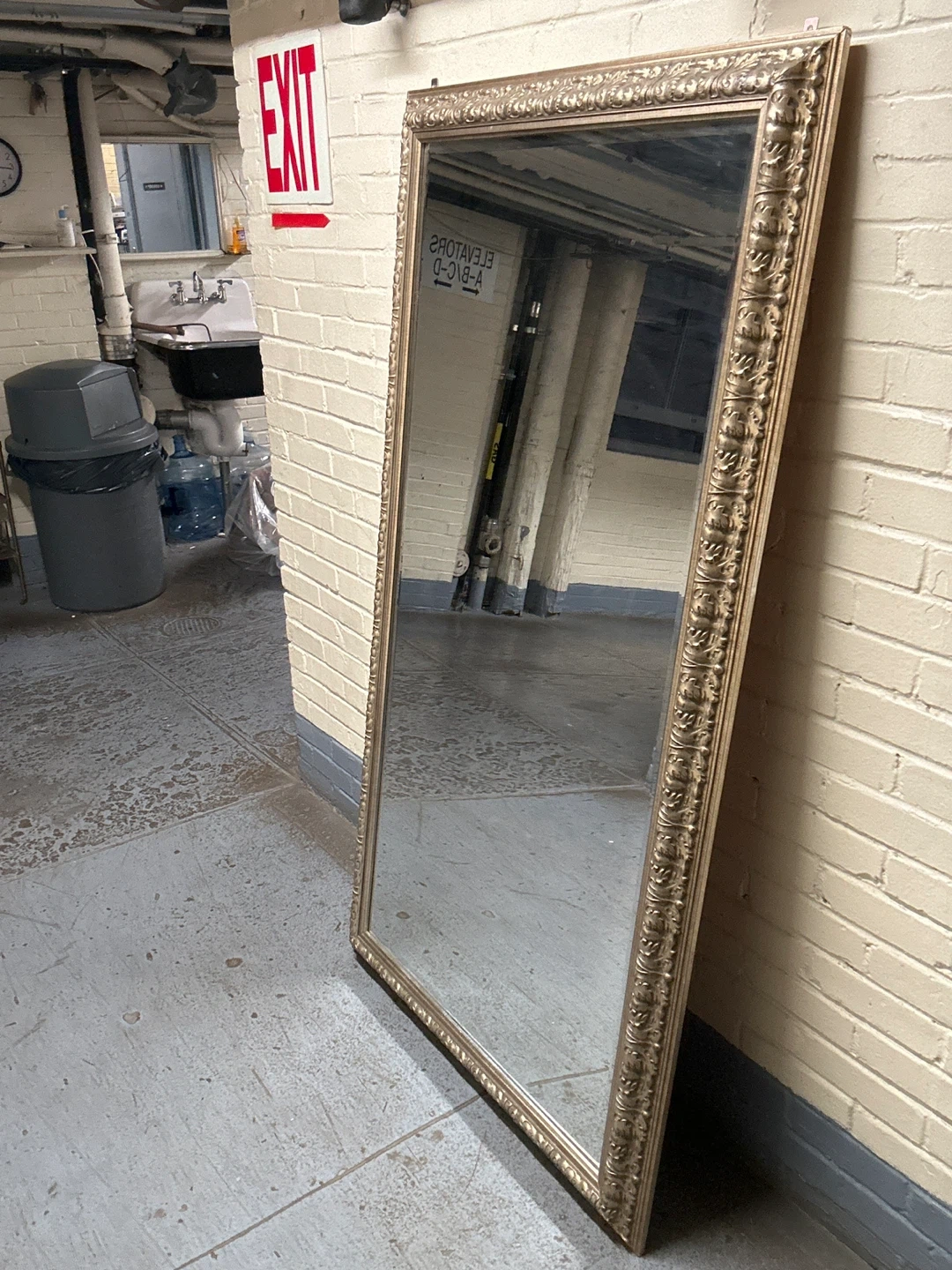 0Selling a large mirror with an ornate gold frame. It's in good condition and would look great in any room
