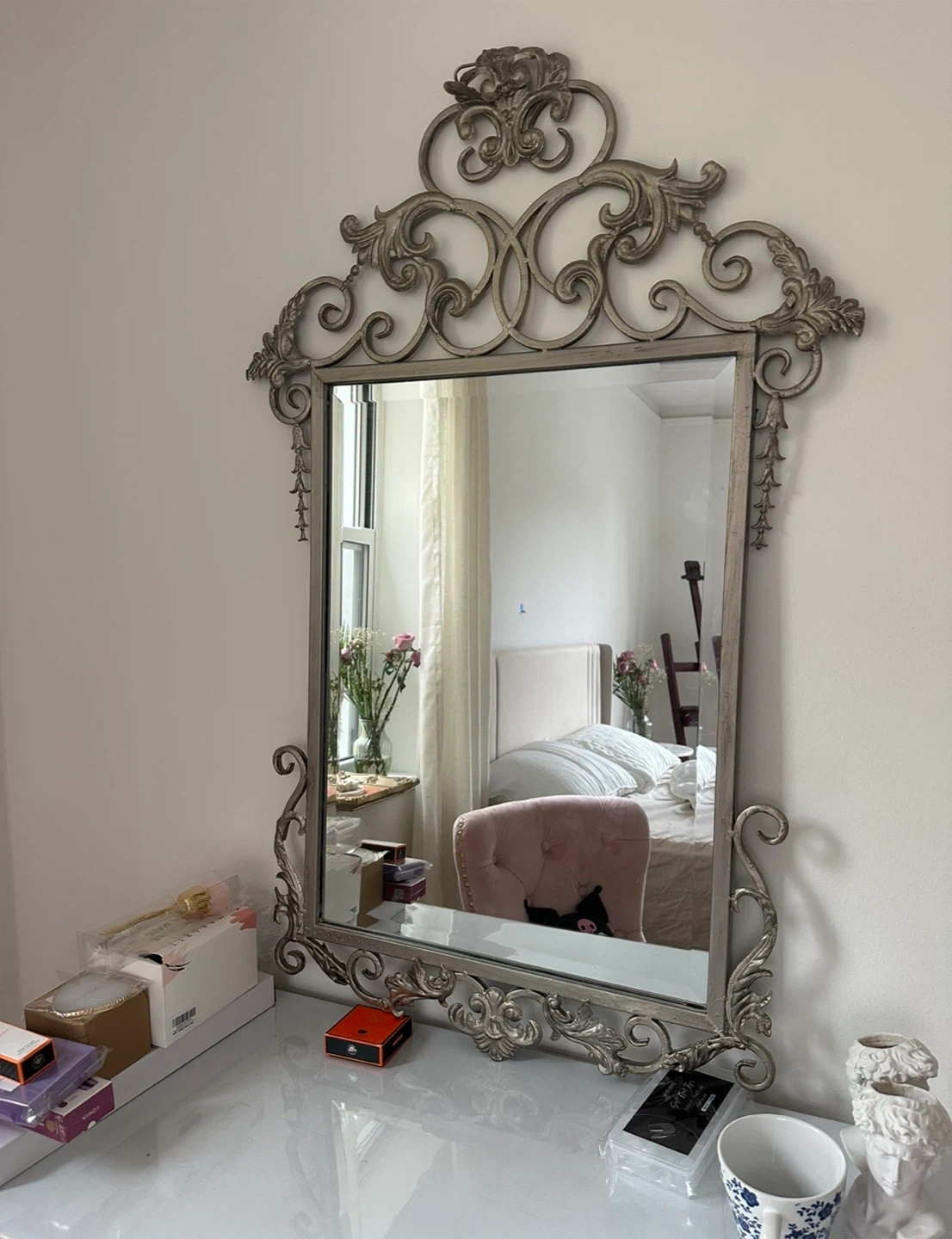 Selling a beautiful ornate vanity mirror! It has a lovely silver finish and would add a touch of elegance to any room