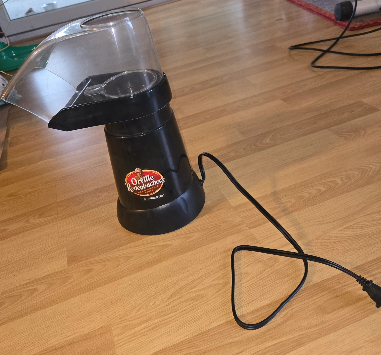 25I'm selling a Presto hot air popcorn popper with Orville Redenbacher's branding. This popper is great for making a quick and healthy snack. It's in good working condition and ready for a new home. Just plug it in and enjoy fresh popcorn in minutes! Pick up in the Town of Newburgh NY by Aldi's OBO