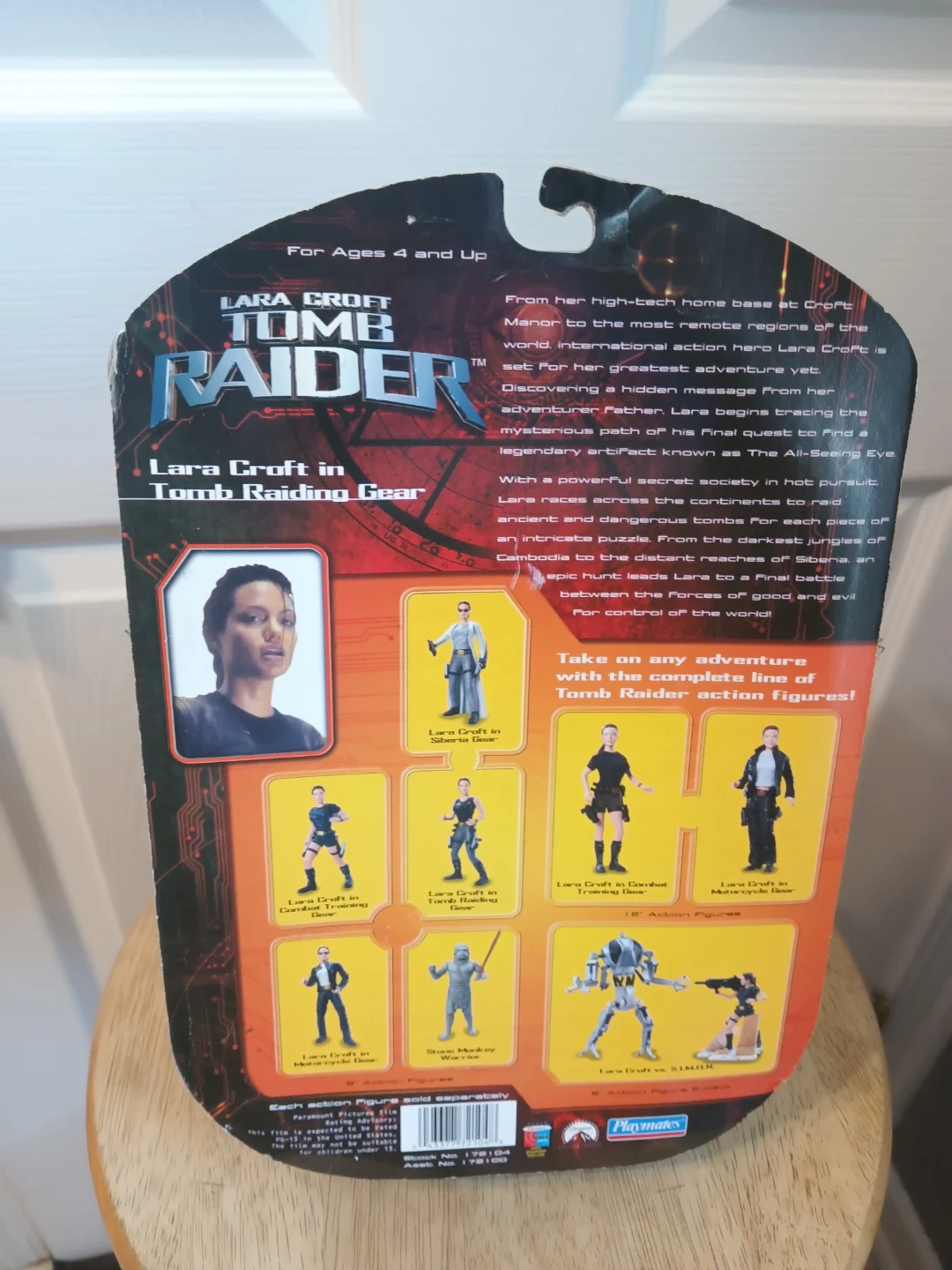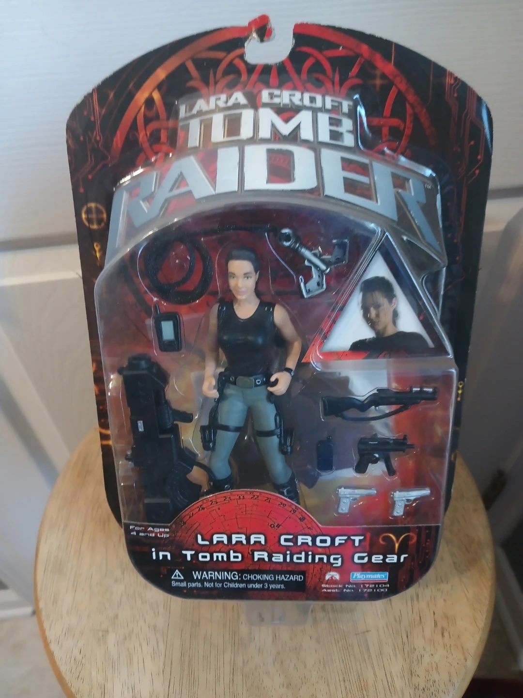 Selling a Lara Croft Tomb Raider action figure in Tomb Raiding Gear! This action figure is for ages 4 and up. It comes in the original packaging. Packaging has some wear,dings and bends. See pictures. Sold as is.