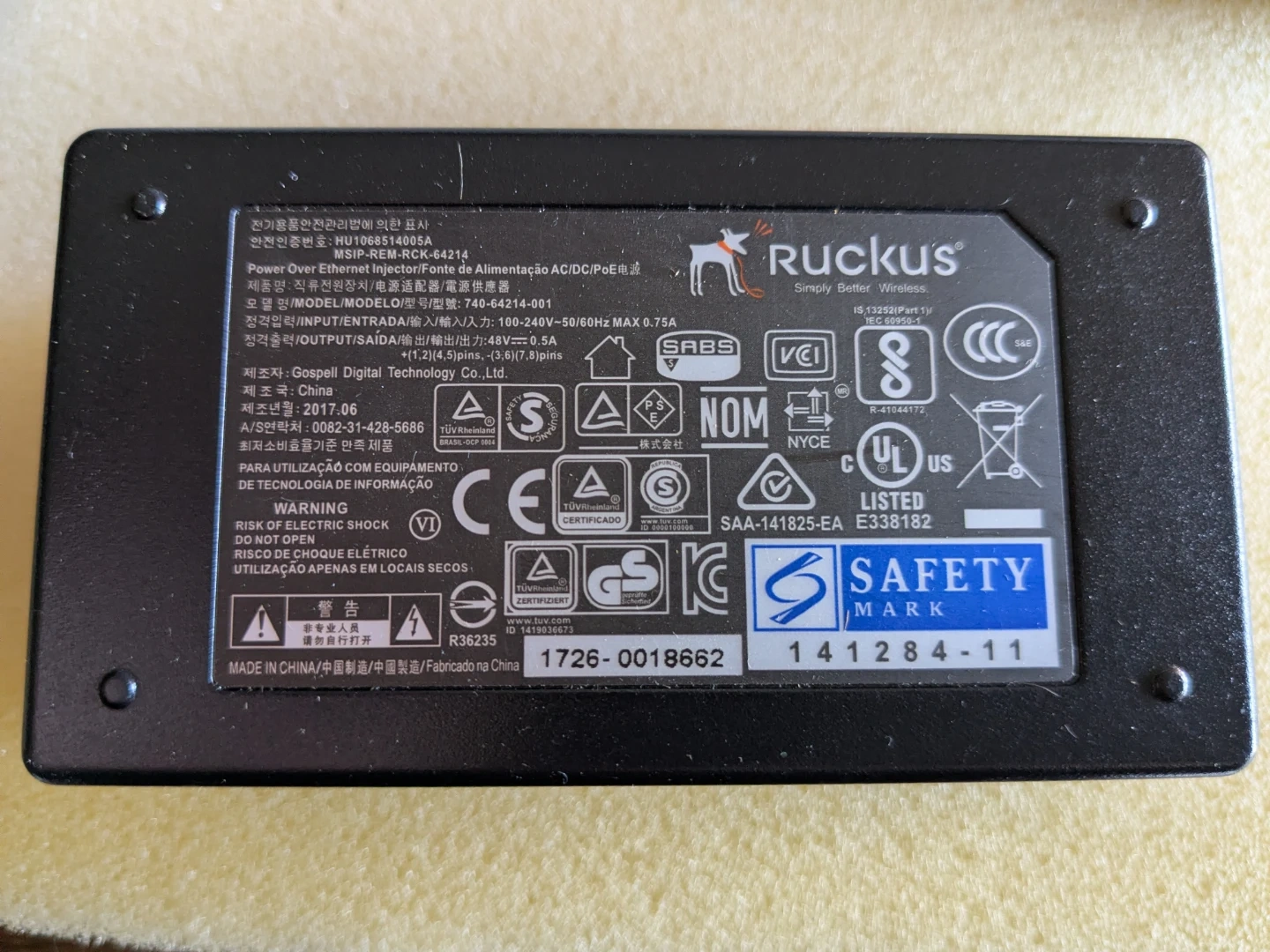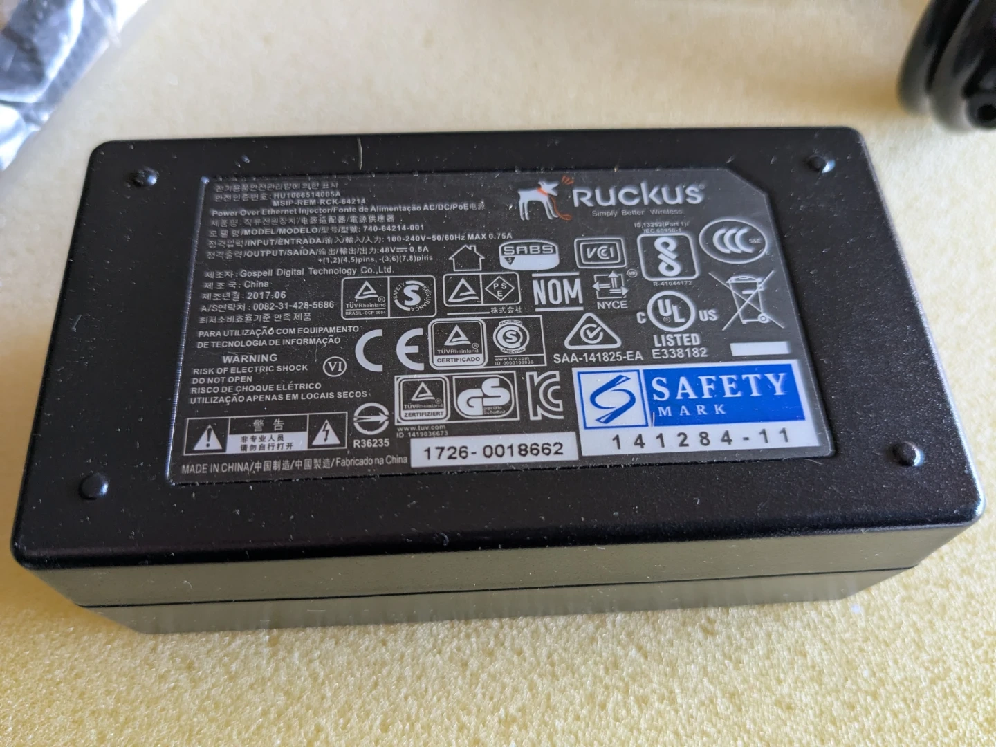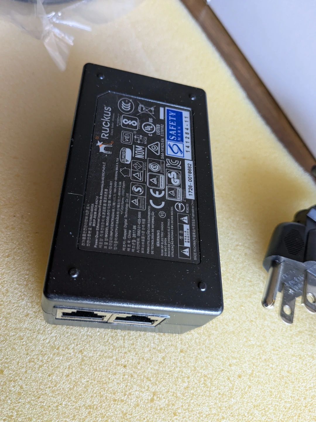 Ruckus Power Over Ethernet Injector 100-240V 48V 0.5A
