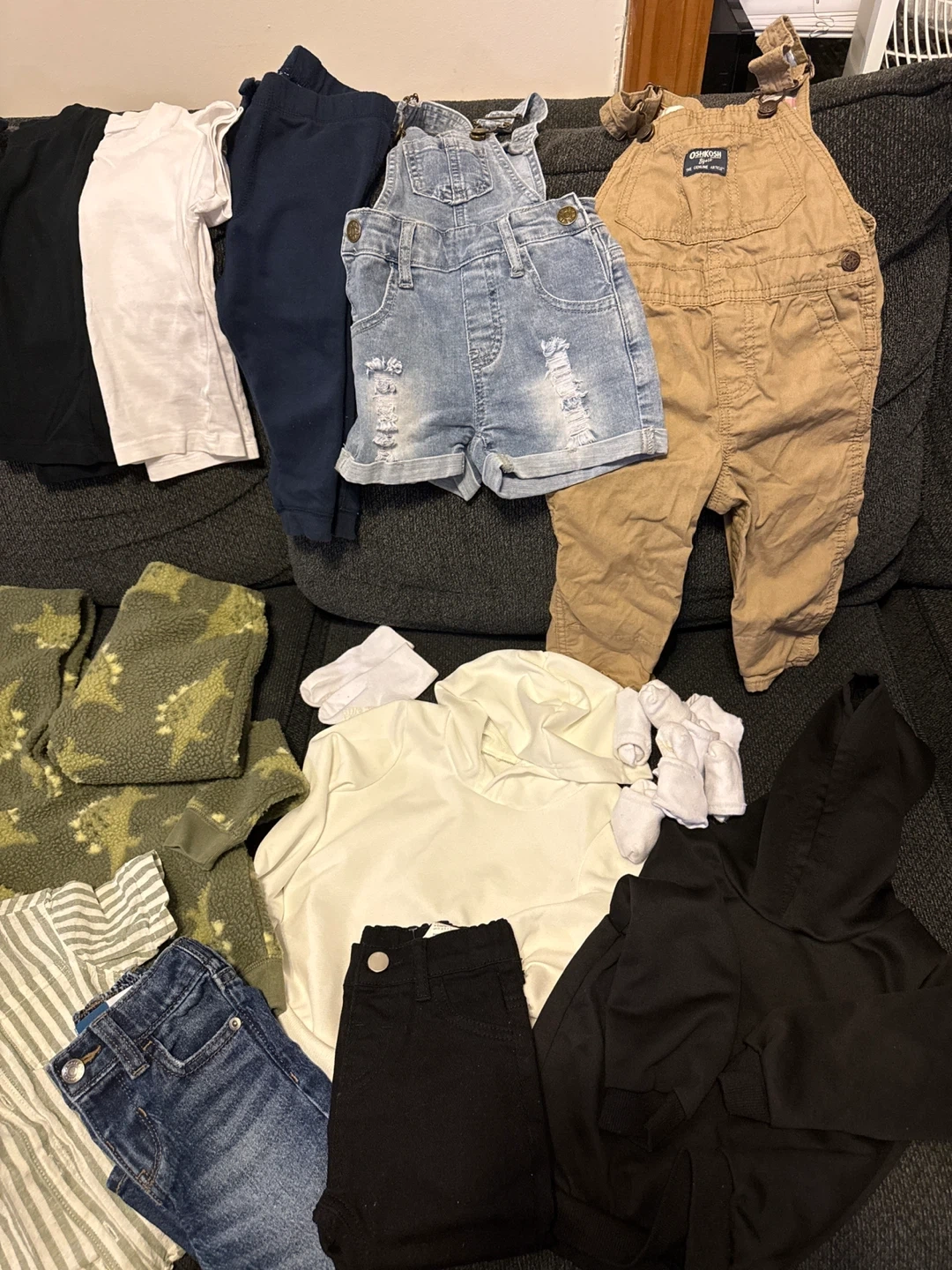 Selling a bundle of baby clothes in various colors and sizes! Includes shirts, pants, overalls, hoodies, and more. Some items are brand new with tags. Perfect for your little one!