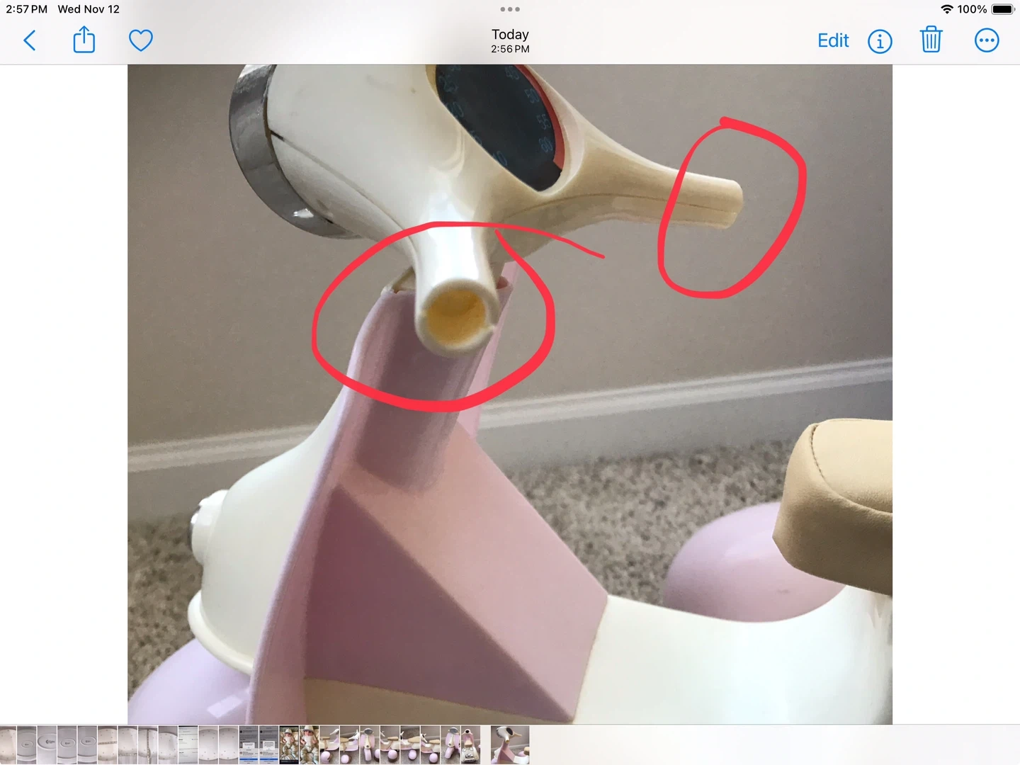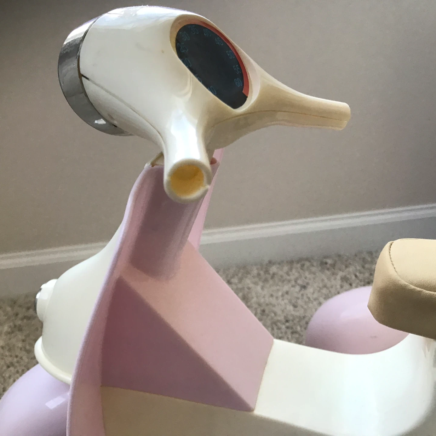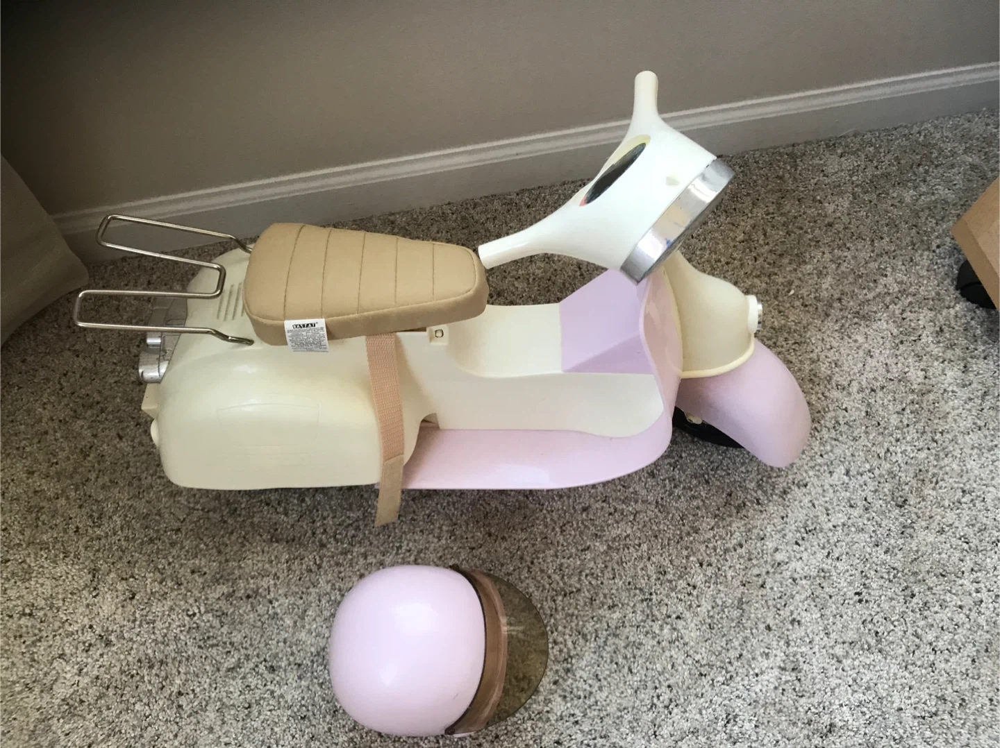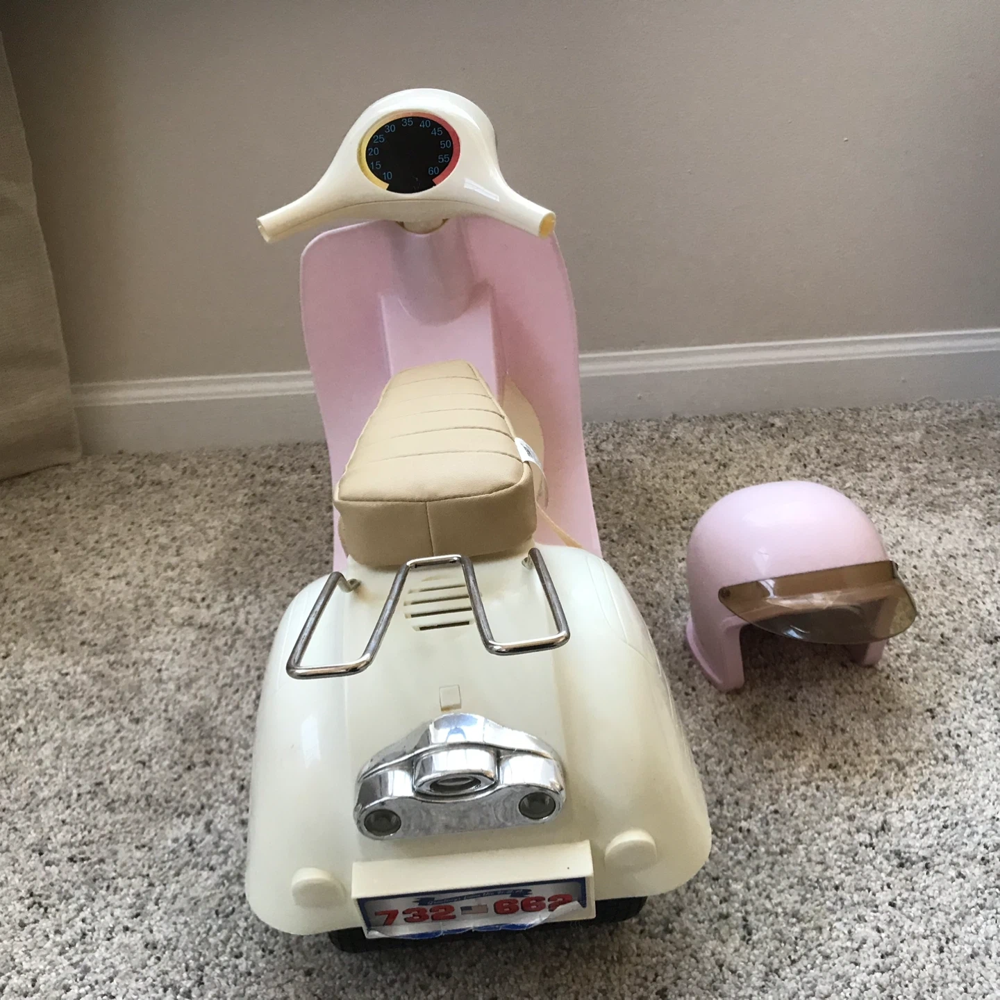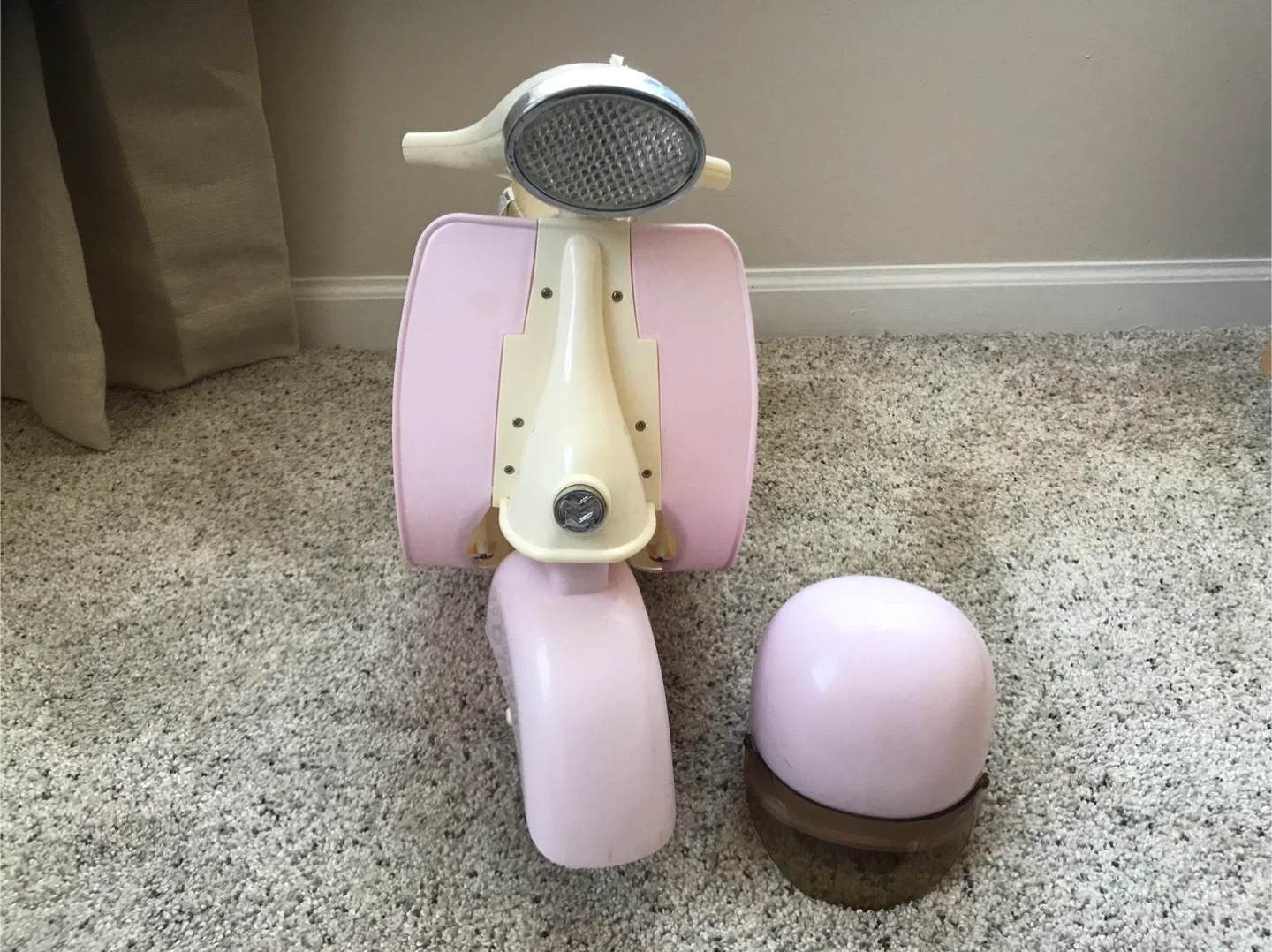 65Selling an Our Generation retro scooter with a matching helmet! This adorable set is perfect for dolls who love to cruise in style. The scooter features a cute design, and the helmet ensures safety during their imaginative adventures. Pieces missing from handlebars. See photos