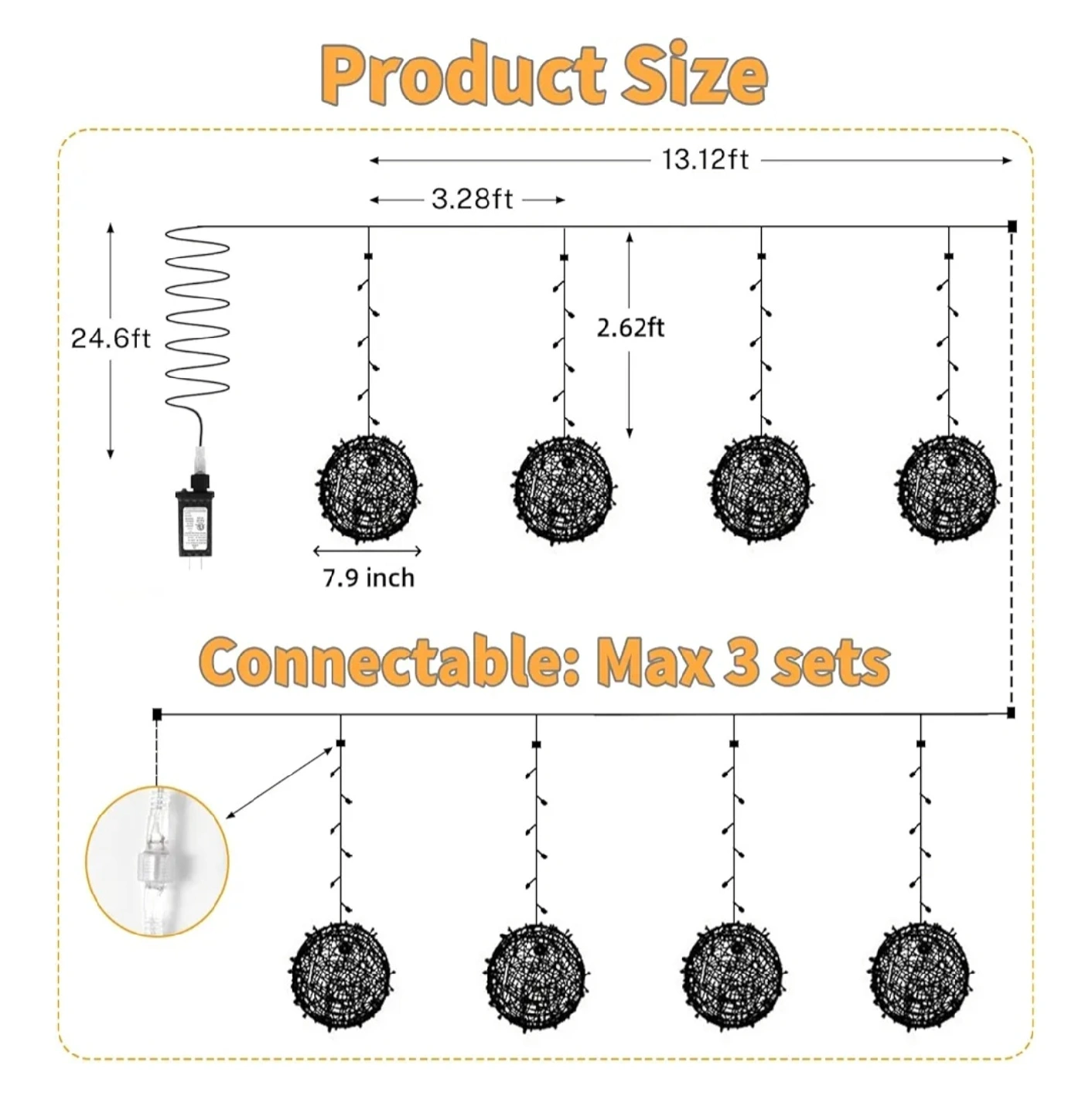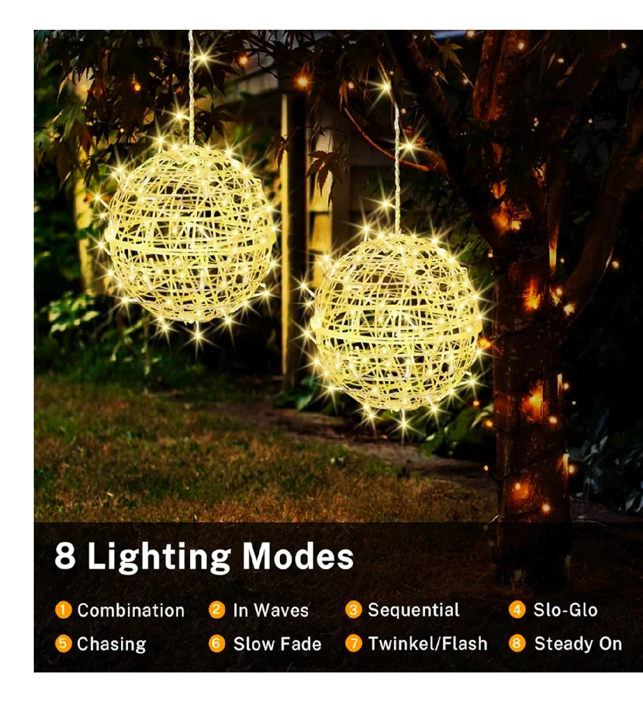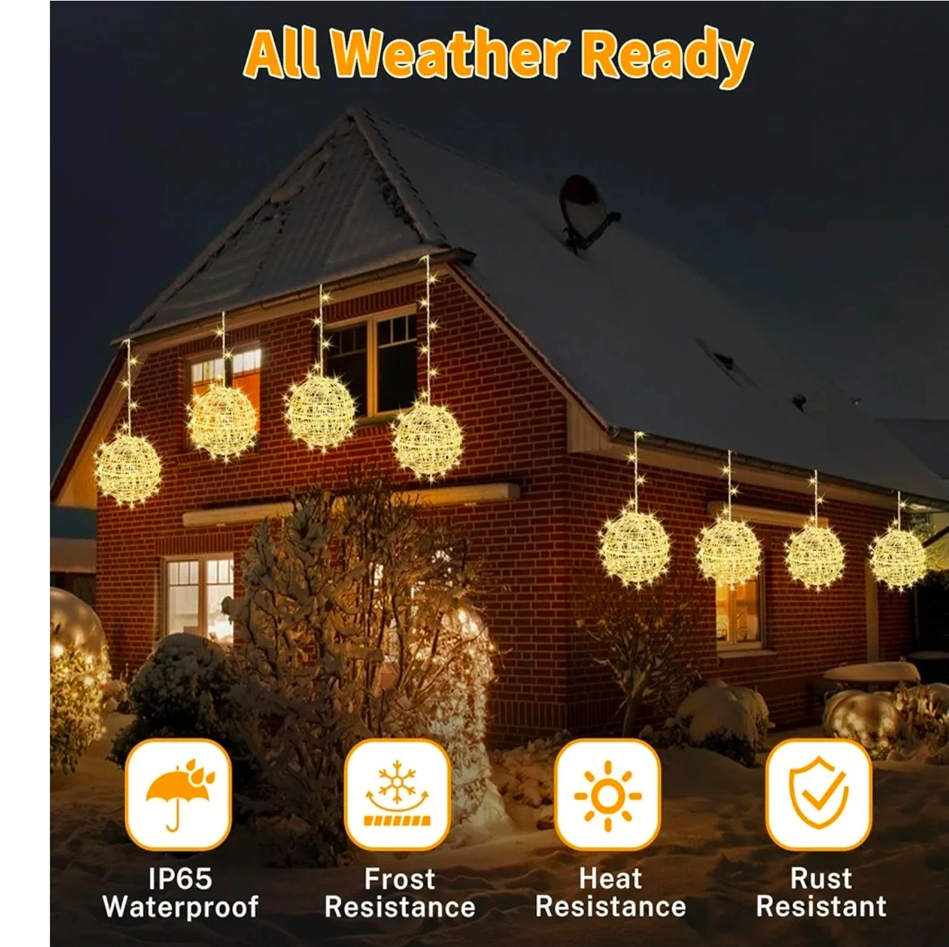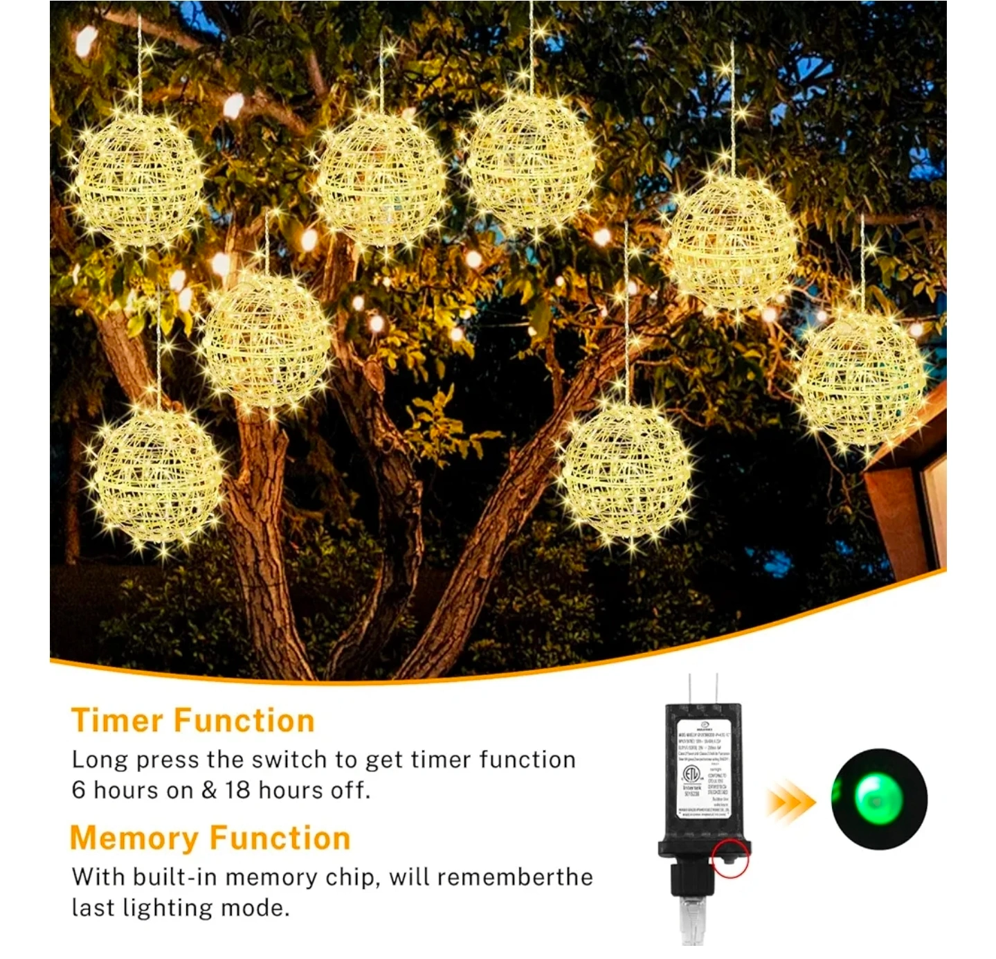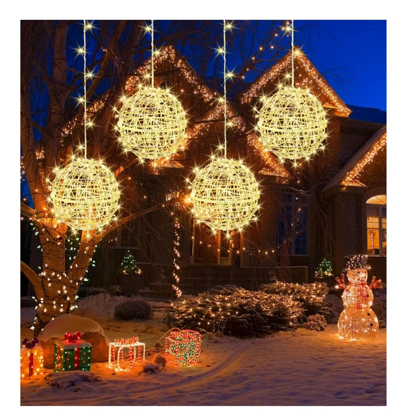 Outdoor Christmas Balls Lights 4 Pack Hanging 7.9" LED Garden Sphere Tree Lights 8 Modes Waterproof Glow Globe Lights with Memory Timer Plug for Party Yard Porch Eave Patio Xmas Decorations-Warm White