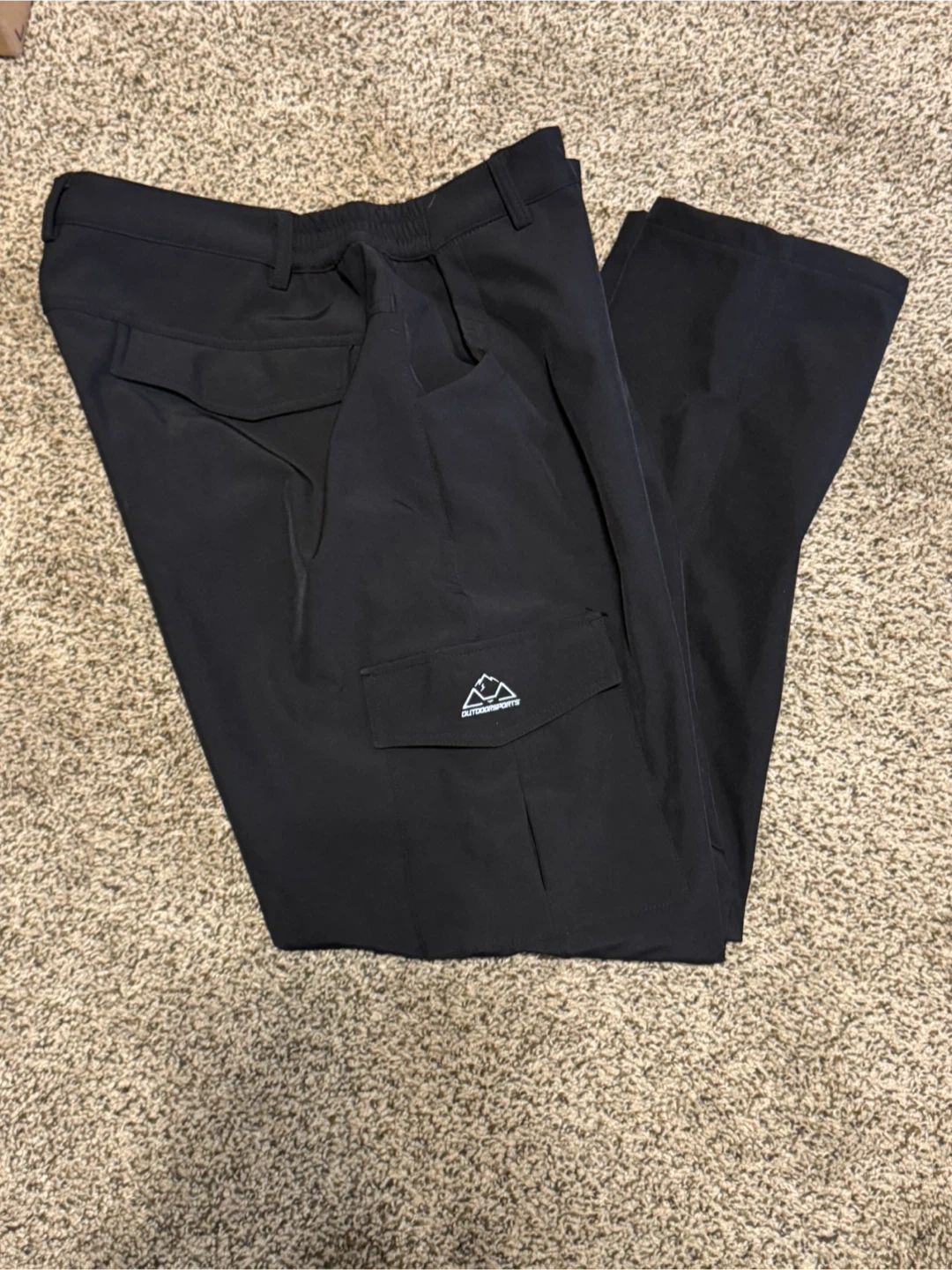 77Selling a pair of OutdoorSports cargo pants in size XXL. They are black and appear to be in great condition. Perfect for outdoor activities or casual wear! From pet friendly home.