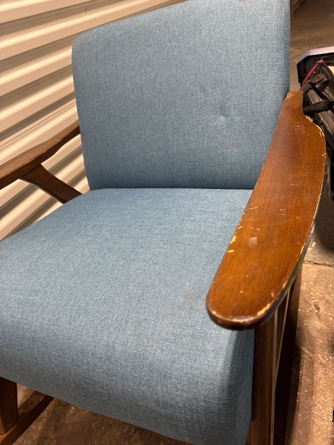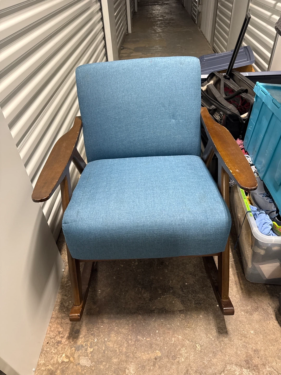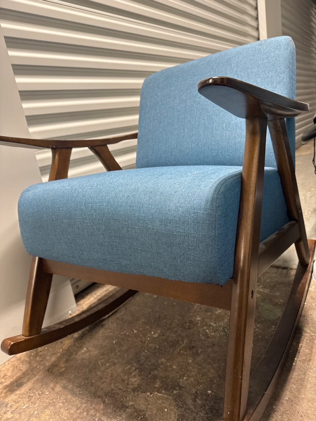 Blue Upholstered Rocking Chair with Wooden Frame