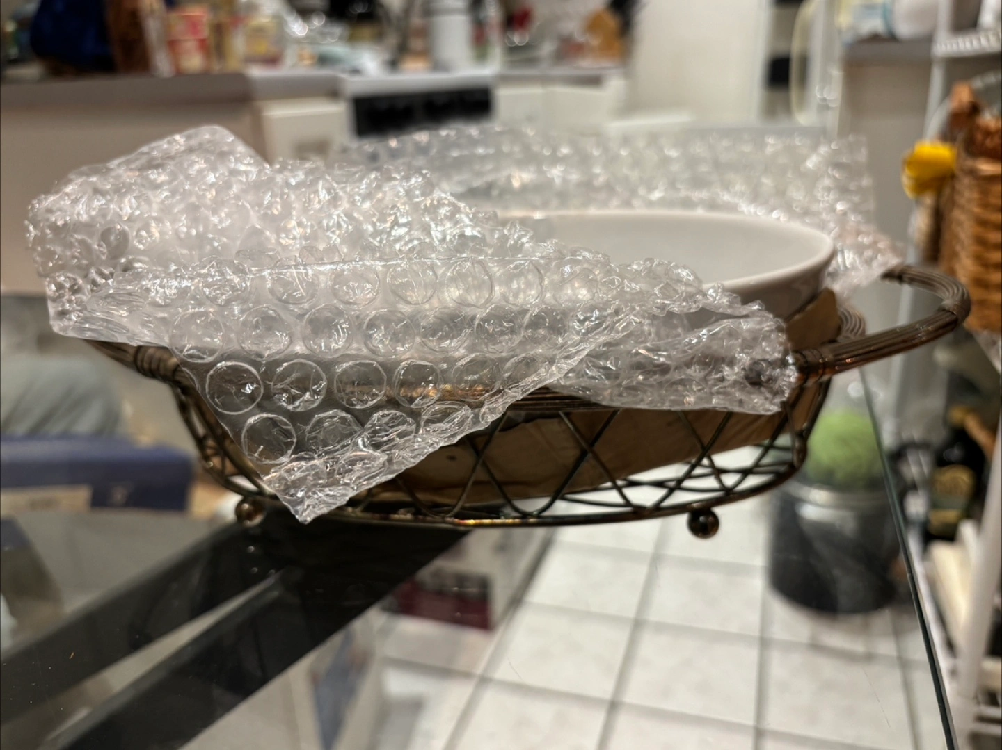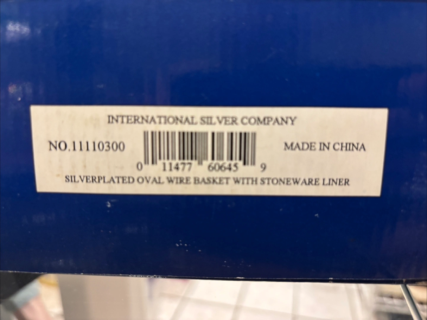 MOVING SALE *must pick up by Saturday, August 16th* A silverplated oval basket with a stoneware liner. You can use this to hold your favorite fruits. Never used.