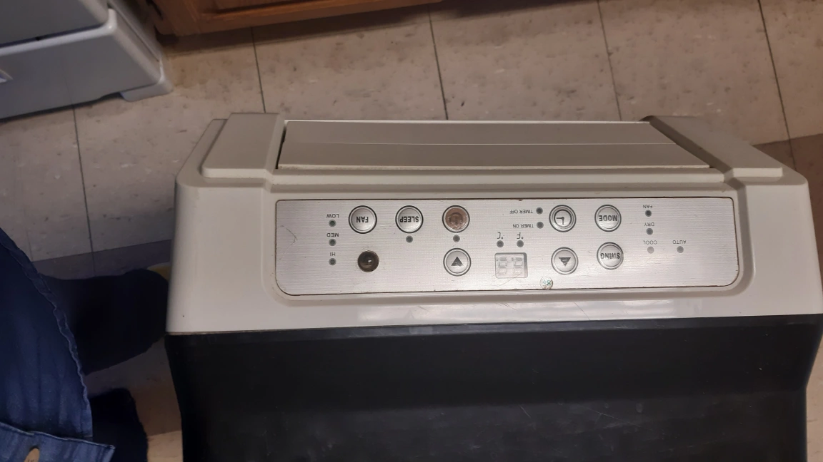 Whynter Portable Air Conditioner in white and black. Unit is designed for cooling. It has multiple modes including fan, cool, and dry.
