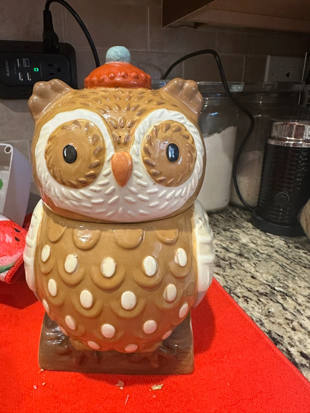 Buy & SellOwl Cookie JarOwl Cookie Jar$7Cute owl cookie jar in great condition! It's perfect for storing your favorite treats or adding a whimsical touch to your kitchen decorConditionGood0 chats·0 favorites·2 viewsSELLERSilClearing100 reviewsWHERE TO MEETWalgreen
