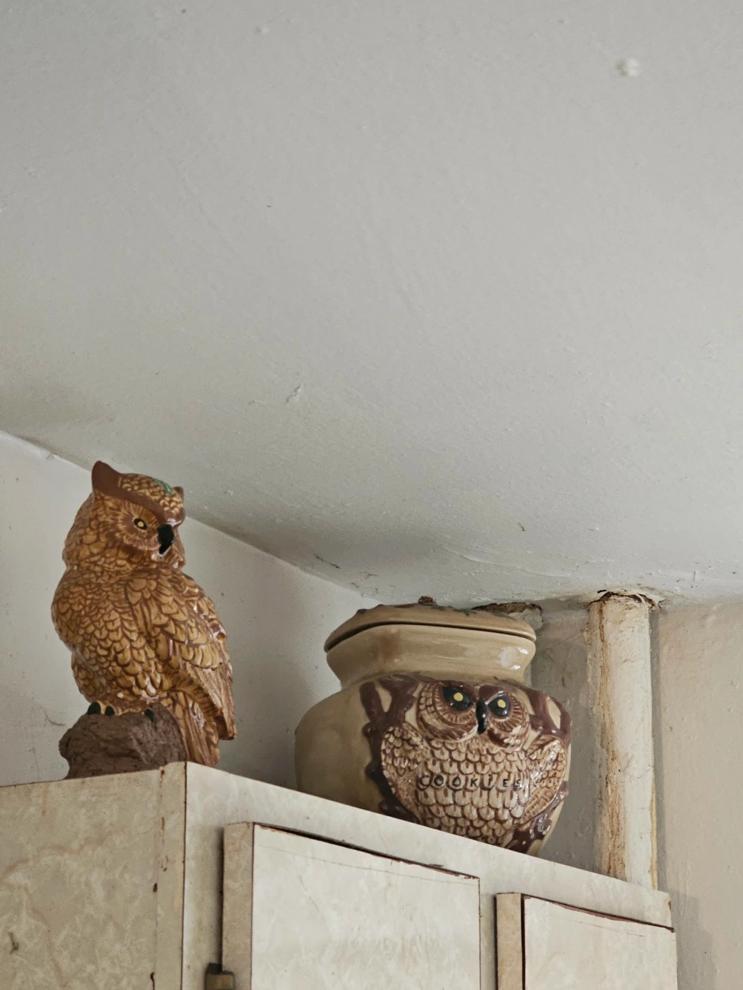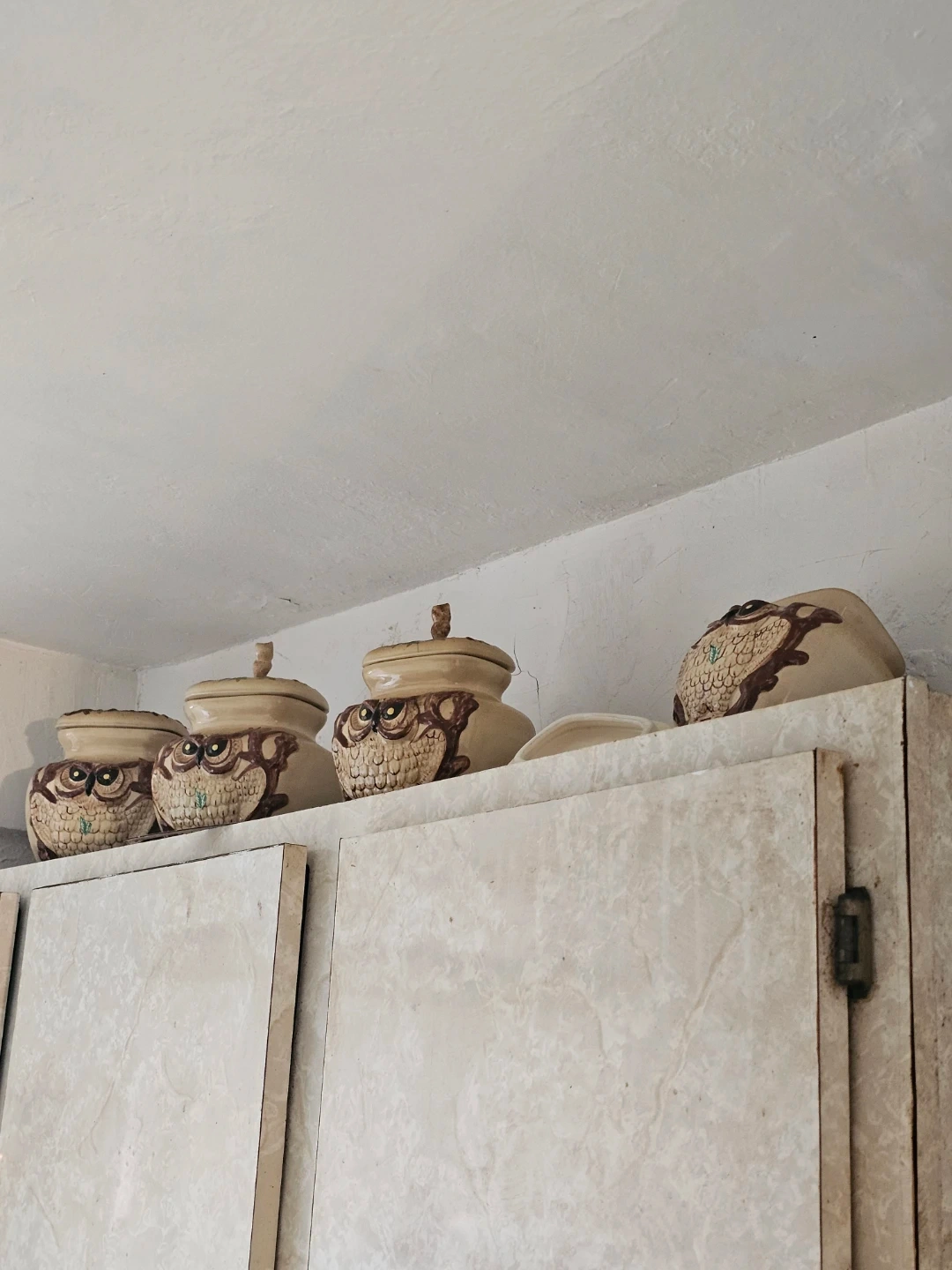 20I'm selling a collection of owl-themed decorative items. These include owl figurines, jars, and a hanging lamp. They would be a great addition to any owl lover's home!