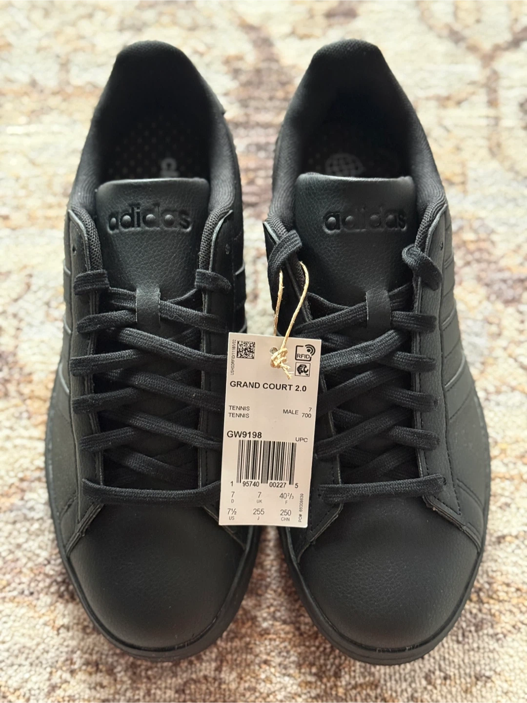 Selling a pair of Adidas Grand Court 2.0 tennis shoes in black! They're in great condition and ready for a new owner. These are a size 7.