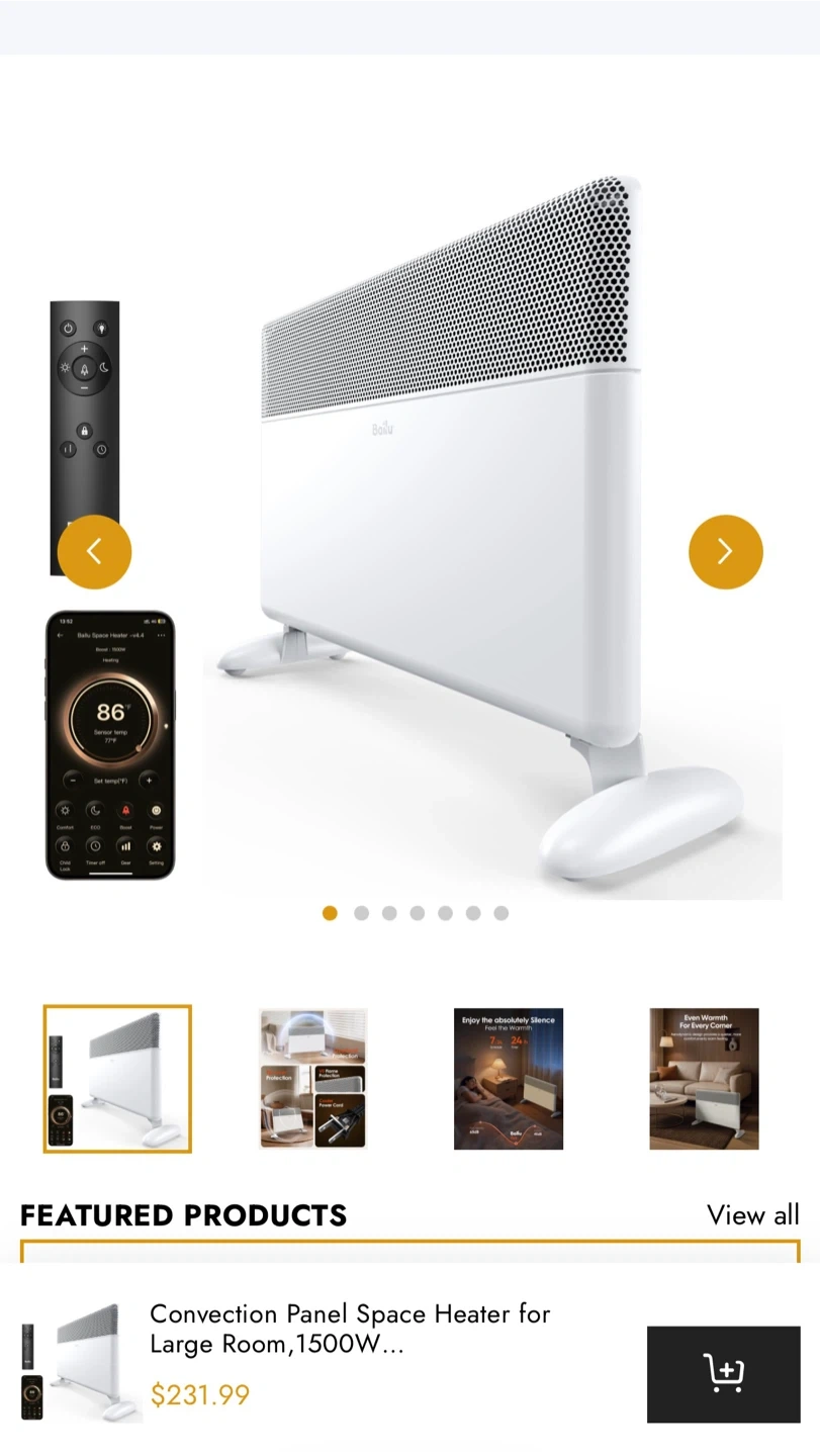 Convection Panel Space Heater for Large Room,1500W Electric Heater with Programmable Thermostat,WiFi App Control,Standing or Wall Mount,Smart Quiet Heater for Indoor Use,Works with Alexa,White