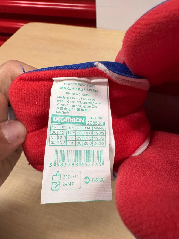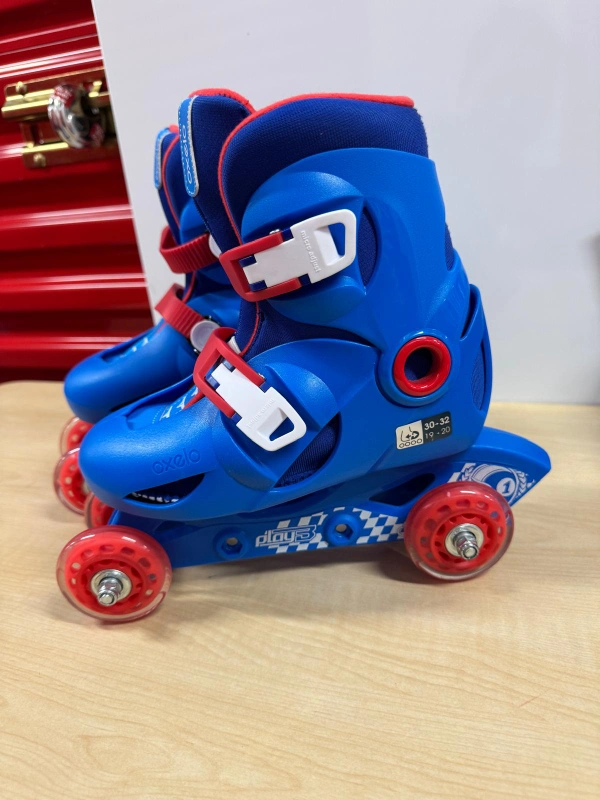 189Get ready to roll with these Oxelo Roller Play 3 Boy inline skates with pads! They're in great shape and ready for a new home. The size is US 12 (EU 30). Also included are Oxelo protective pads size 2XS and a helmet