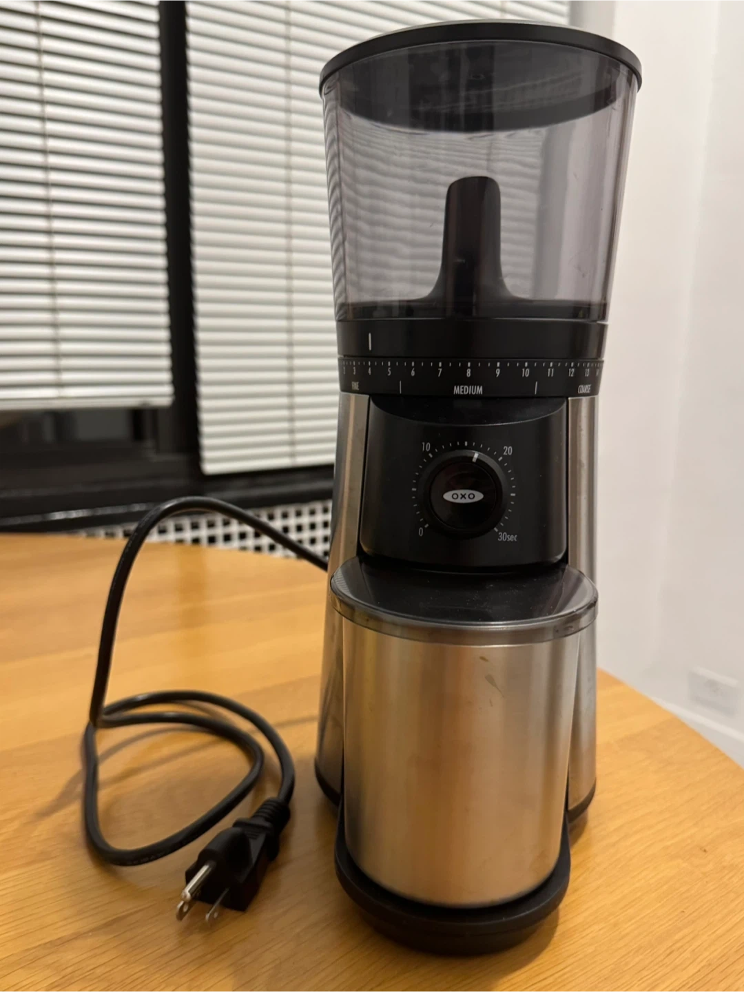 Retails for $100. Never used. Selling an OXO Brew Conical Burr Coffee Grinder. It's in new condition and ready to help you make the perfect cup of coffee at home! It features adjustable grind settings to get the right consistency for any brewing method. The grinder also has a timer, so you can grind the perfect amount every time.