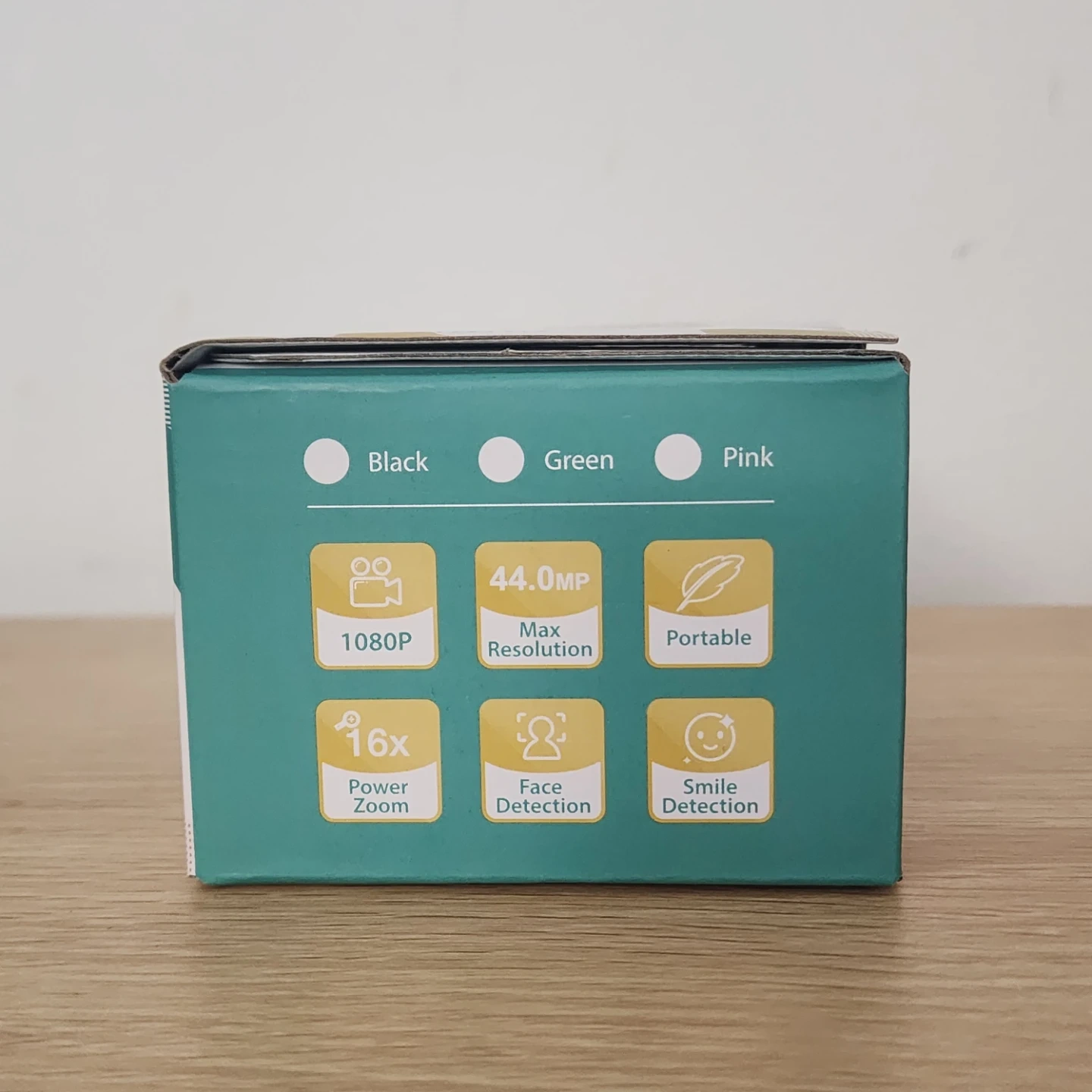 This is a black DC403 digital camera. It offers 1080P video and a 44.0MP max resolution. Features include 16x power zoom, face detection, and smile detection. It's portable and comes in its original box.