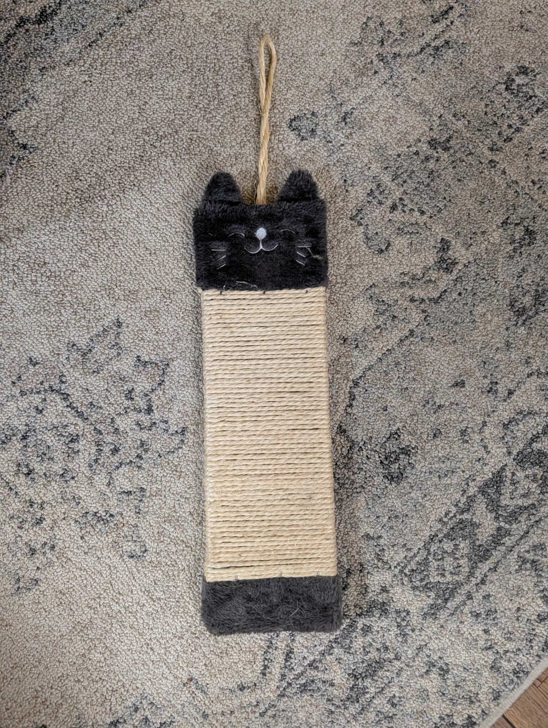 This cat tree features multiple levels and scratching posts for your feline friends. It includes a cozy cubby for napping and sisal rope for scratching. This is a great way to keep your cat entertained and off your furniture! Used condition.