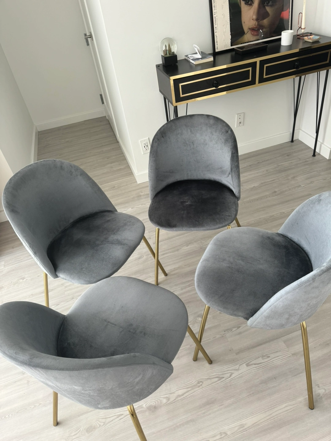 Beautiful set of 4 light blue, gray shades dining chairs in great condition.