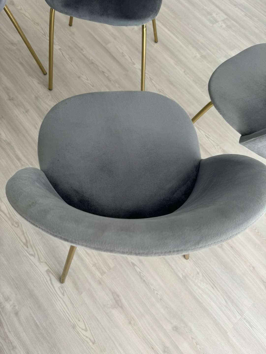 Set of 4 velvet and brass upholstered light blue dining chairs