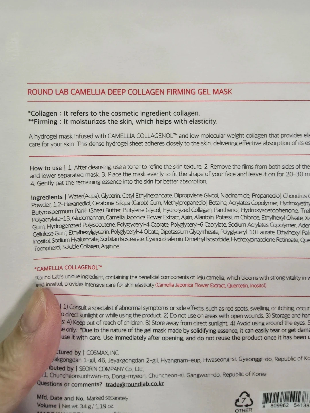 Round Lab Camellia Deep Collagen Firming Gel Mask 2ct