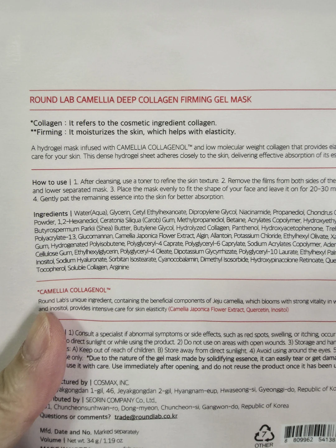 Round Lab Camellia Deep Collagen Firming Gel Mask 2ct