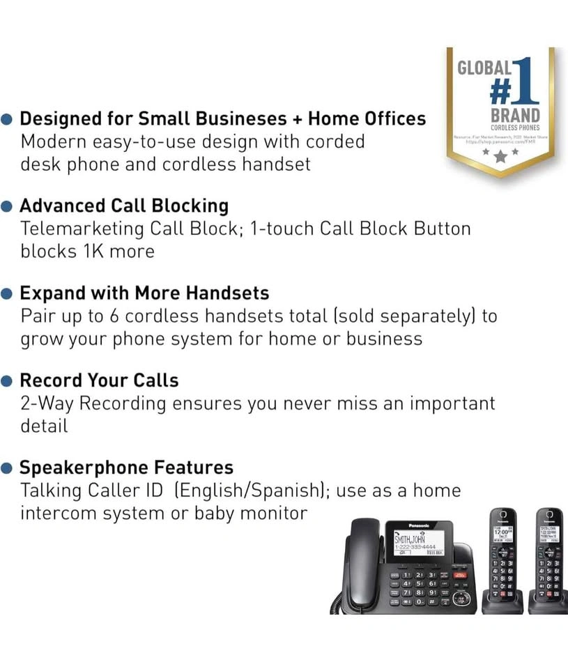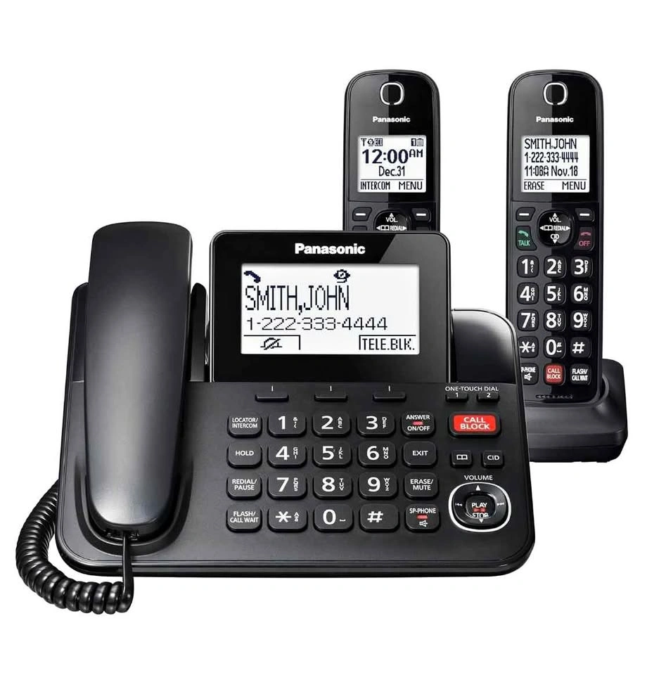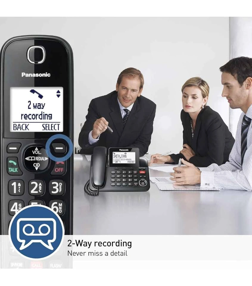 Panasonic Corded/Cordless Phone with Advanced Call Block, 2-Way Recording and Digital Answering Machine, 2 Handsets Expandable up to 6 Cordless Handsets - KX-TGF852B (Black)