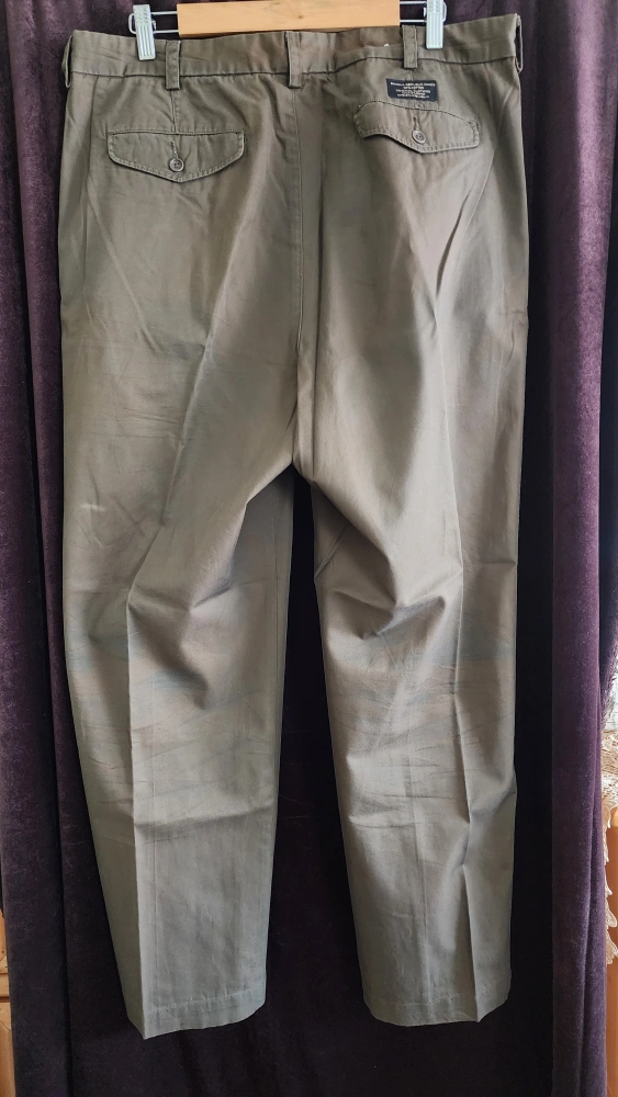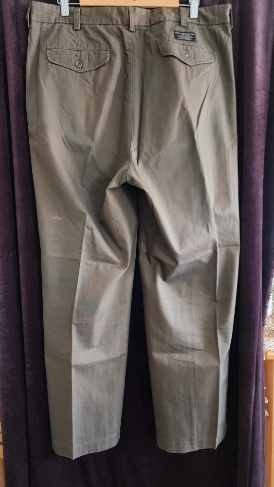 Pleated khaki pants, size 38 (but regular length 32 - 34 - altered). Made in USA, 100% cotton.
