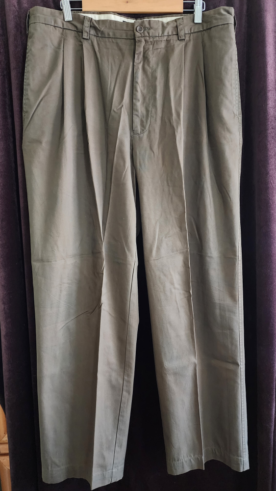 Pleated khaki pants, size 38 (but regular length 32 - 34 - altered). Made in USA, 100% cotton.