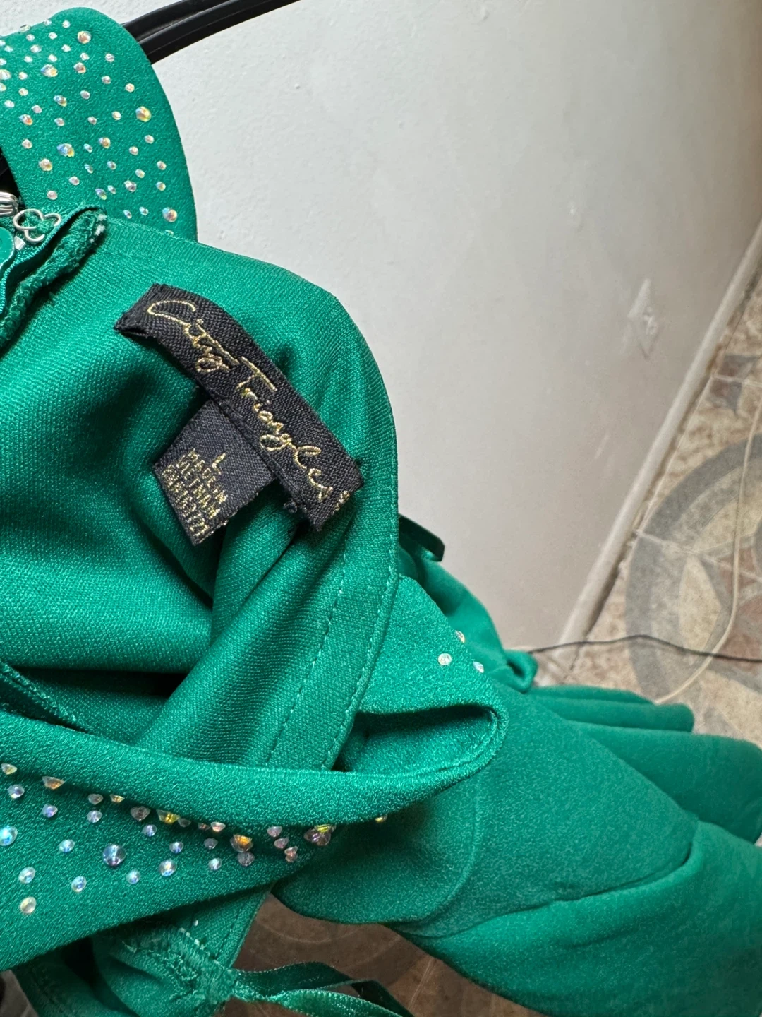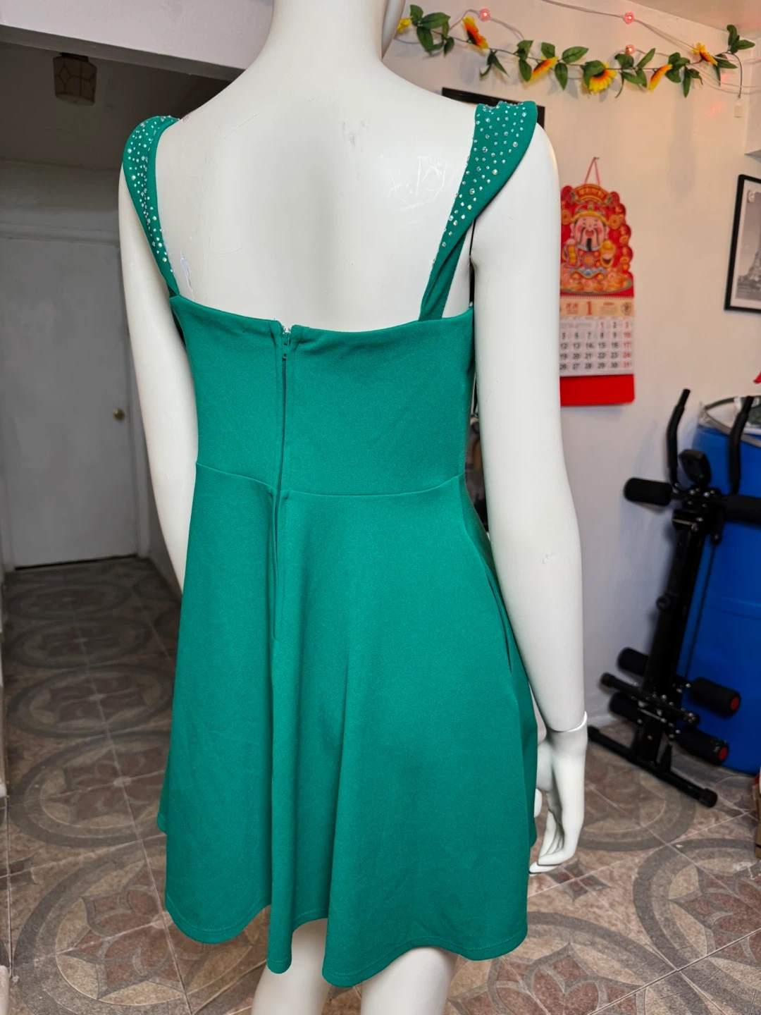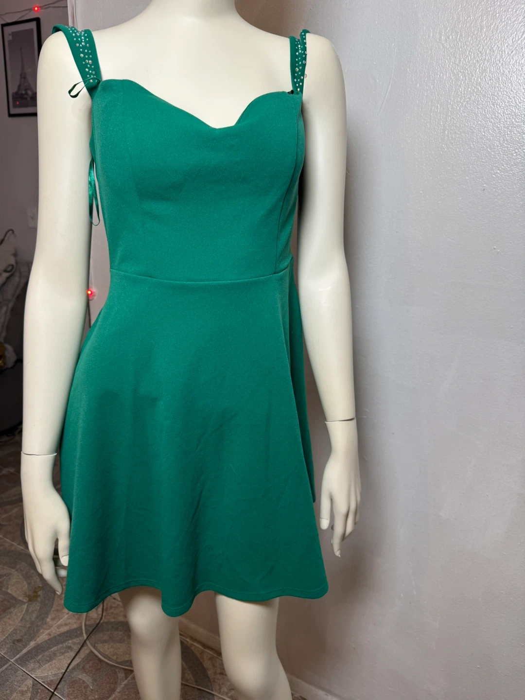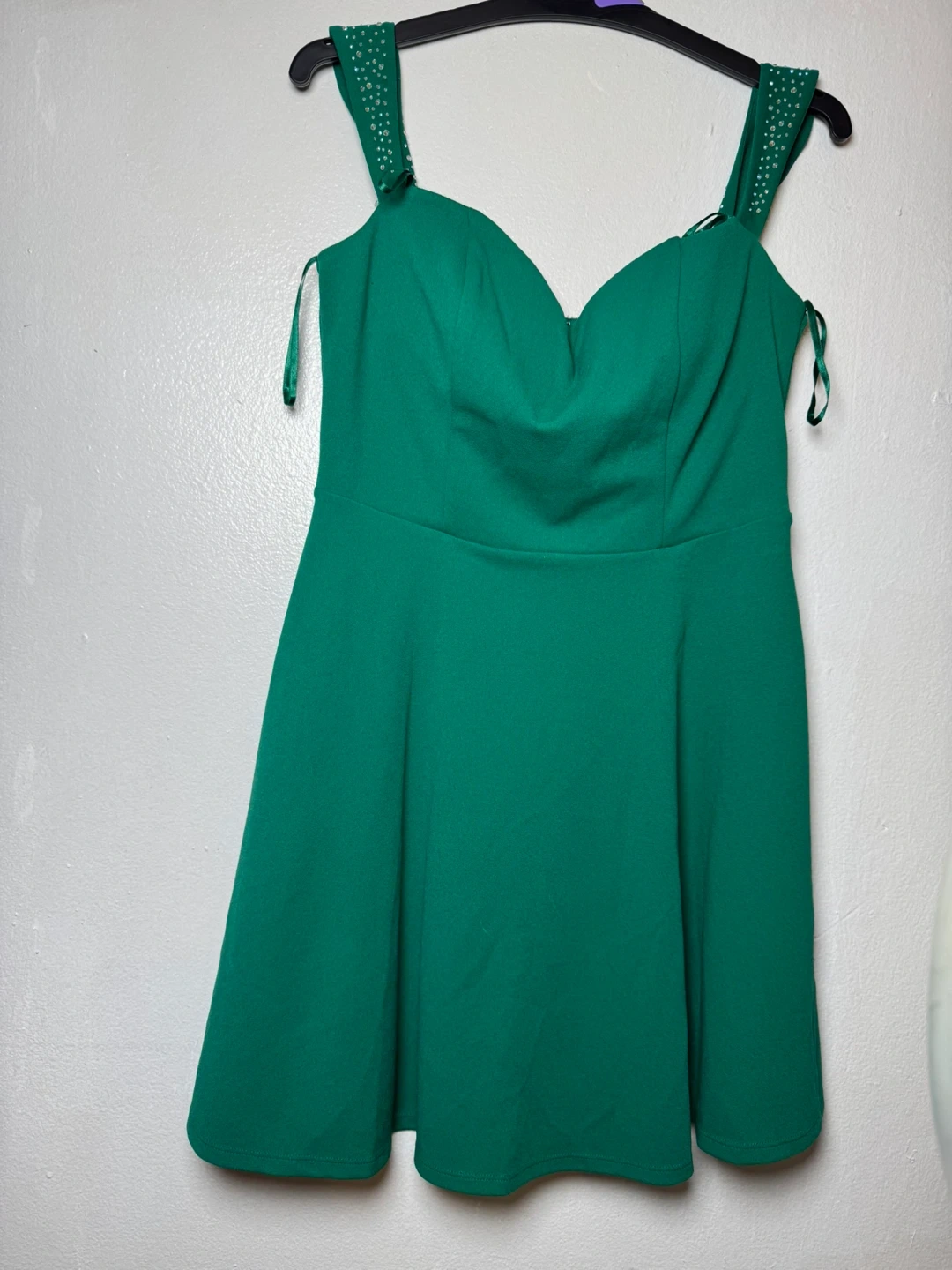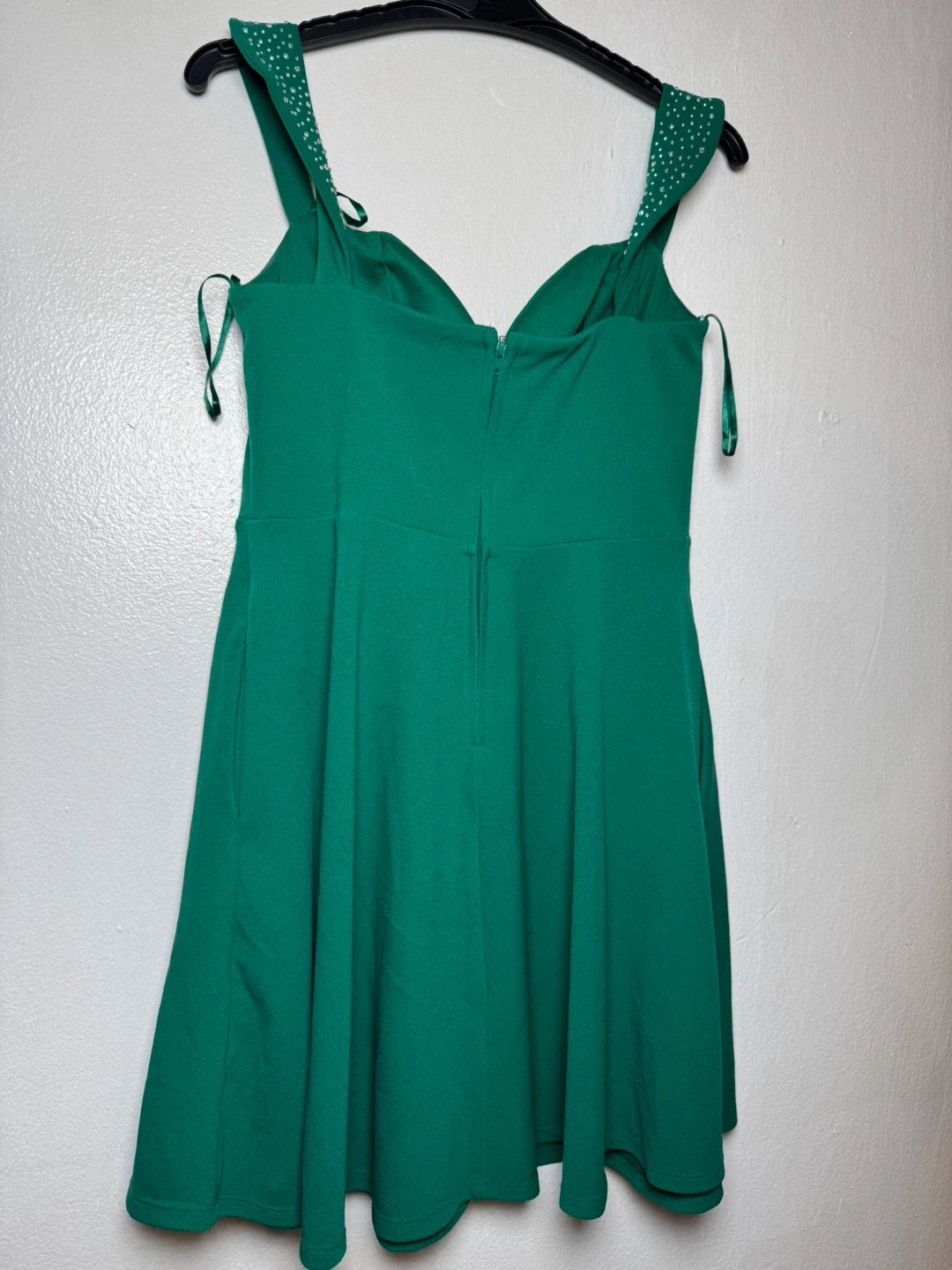 Emerald green dress from City Triangles. Features sparkling embellishments on the straps and a sweetheart neckline. Zipper closure in the back. Perfect for a night out or special occasion!