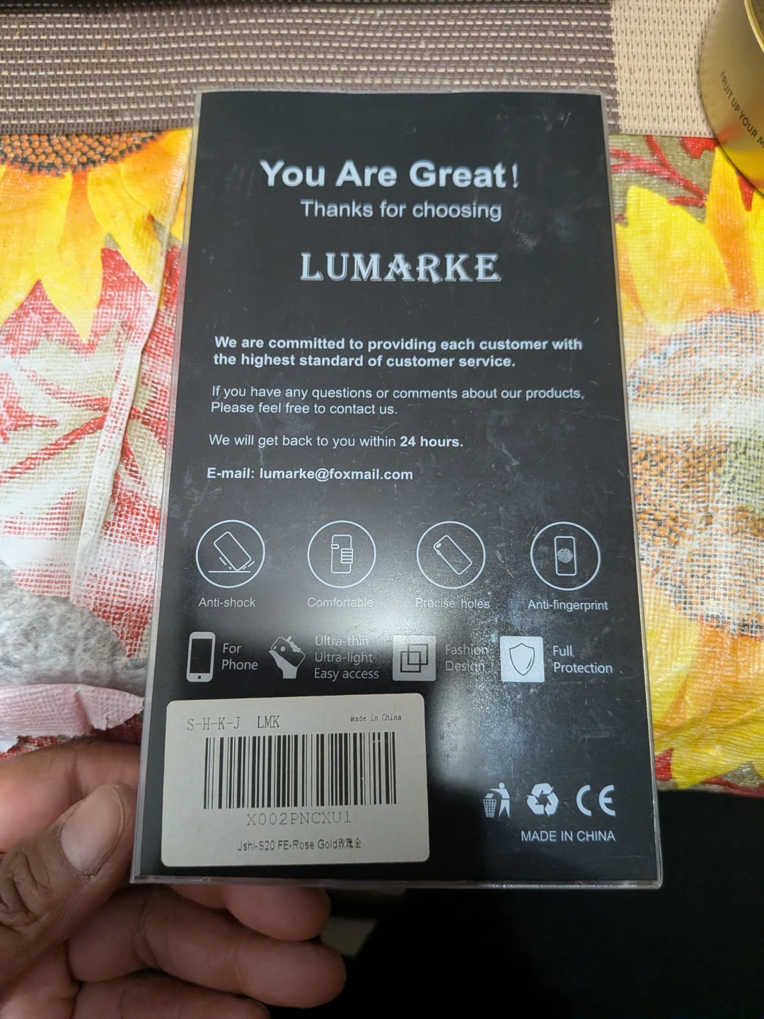 LUMARKE case provides full protection for your phone. It's ultra-light and easy to access all functions. Made in China.
