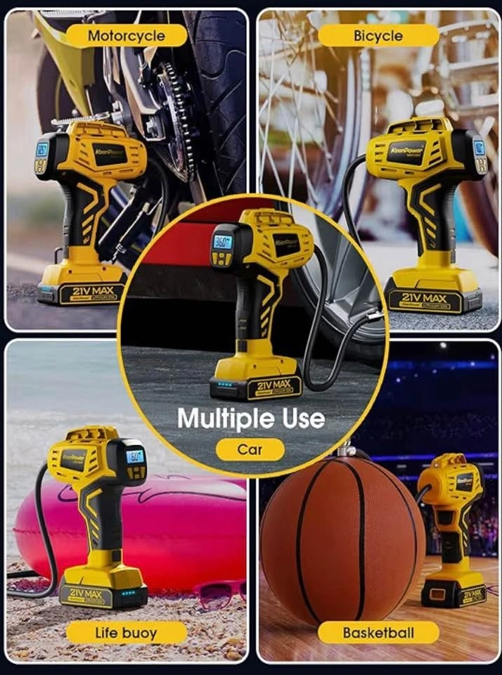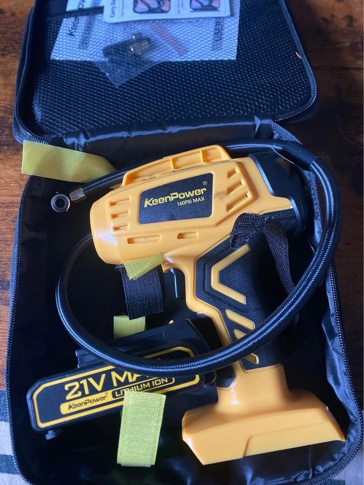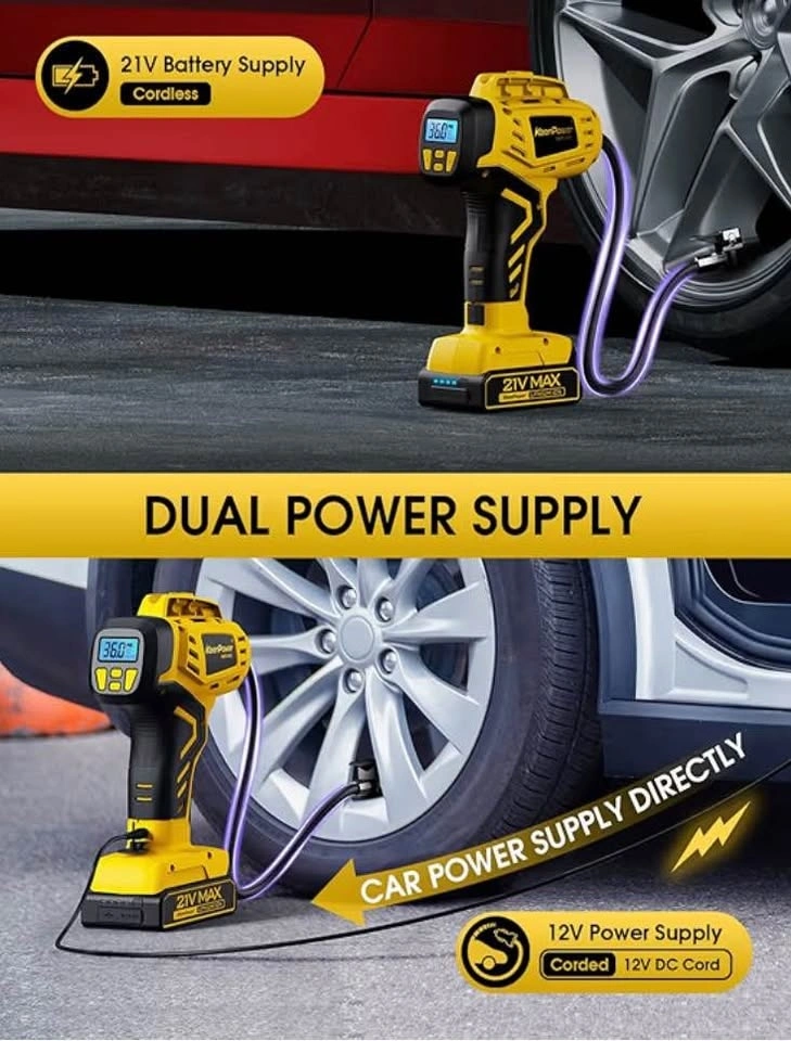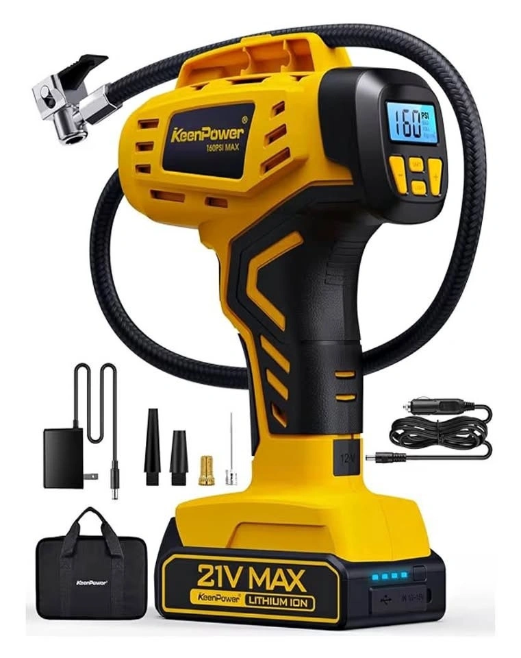 KeenPower Tire Inflator Portable Air Compressor - 2X Faster - 21V Rechargeable Battery Powered Handheld 160PSI Tire Inflator, Dual Power Supply Modes, Air Pump for Car Motorcycle E