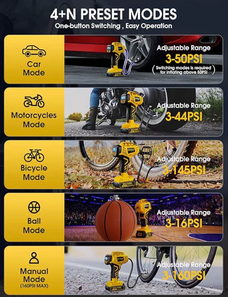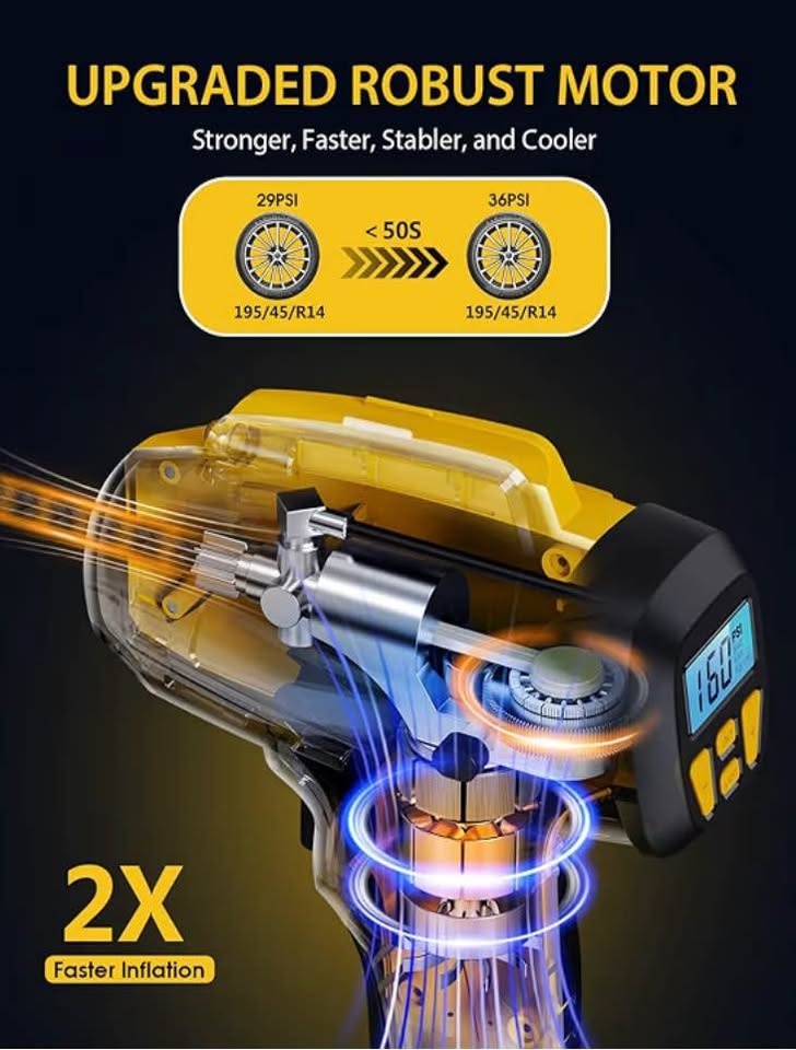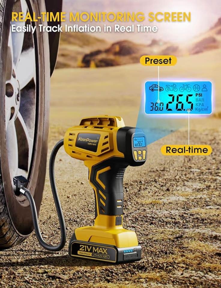 KeenPower Tire Inflator Portable Air Compressor - 2X Faster - 21V Rechargeable Battery Powered Handheld 160PSI Tire Inflator, Dual Power Supply Modes, Air Pump for Car Motorcycle E