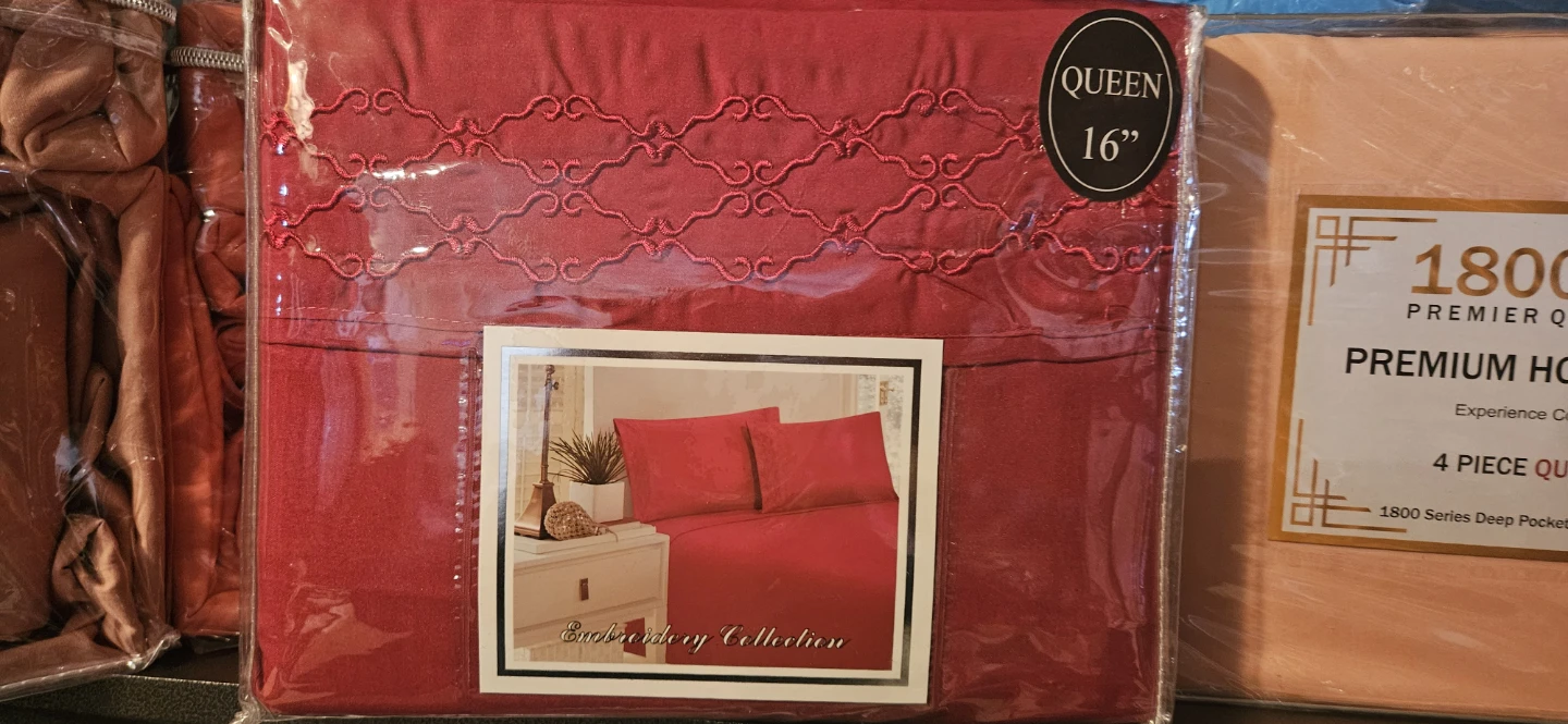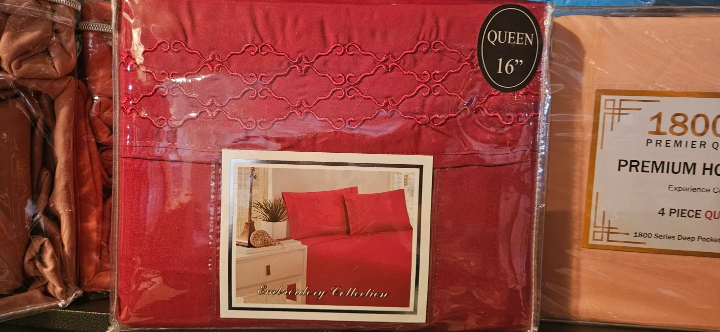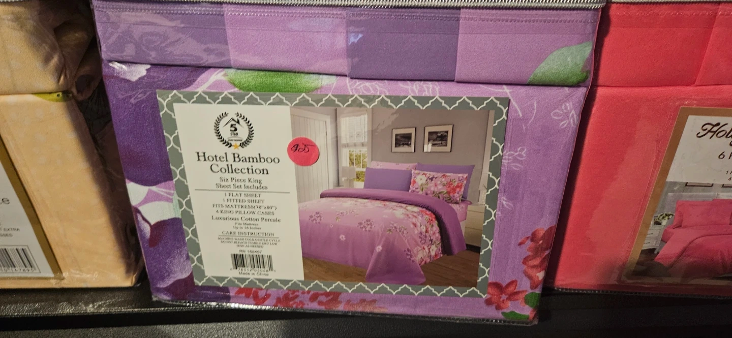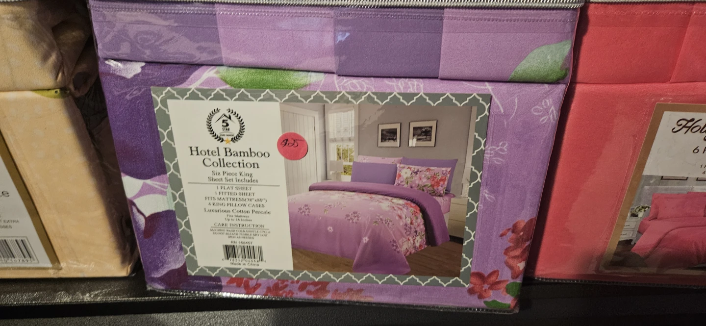 6 Piece King Size Sheet Set. Includes 1 flat sheet, 1 fitted sheet, and 4 pillowcases. Luxurious Cotton Percale. Fits mattress up to 18 inches deep.