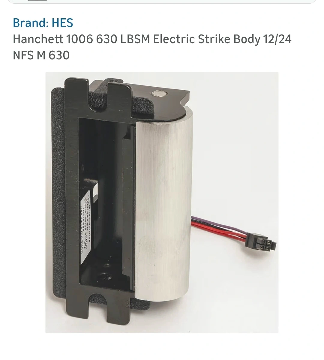 This is the HES 1006 Electric Strike Body. It's designed for heavy duty use and works with all locksets, including those with or without a deadbolt. The unit is versatile and includes necessary wiring and mounting hardware.